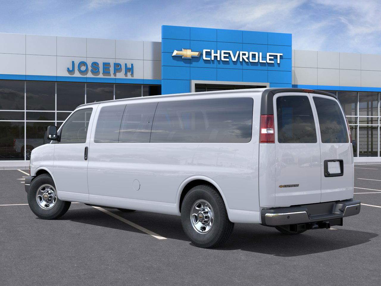 Summit White 2025 Chevrolet Express 3500 LT Passenger RWD Automatic with Overdrive 6.6L V8 15-Passenger Seating (2-3-3-3-4 Seating Config), Chrome Appearance Package, Chrome Grille, Deluxe Console w/Swing Out Storage Bin, Forward Collision Alert, Front & Rear Chrome Bumpers w/Step-Pad, Full-Floor Color-Keyed Carpeting, Heavy-Duty Rear Locking Differential, Heavy-Duty Trailering Equipment, Lane Departure Warning System, Preferred Equipment Group 1LT, Remote Keyless Entry, Remote Vehicle Starter System, Theft Alarm Notification, Trailer Hitch Weight Distributing Platform, Wheel Trim w/Chrome Center Caps.
