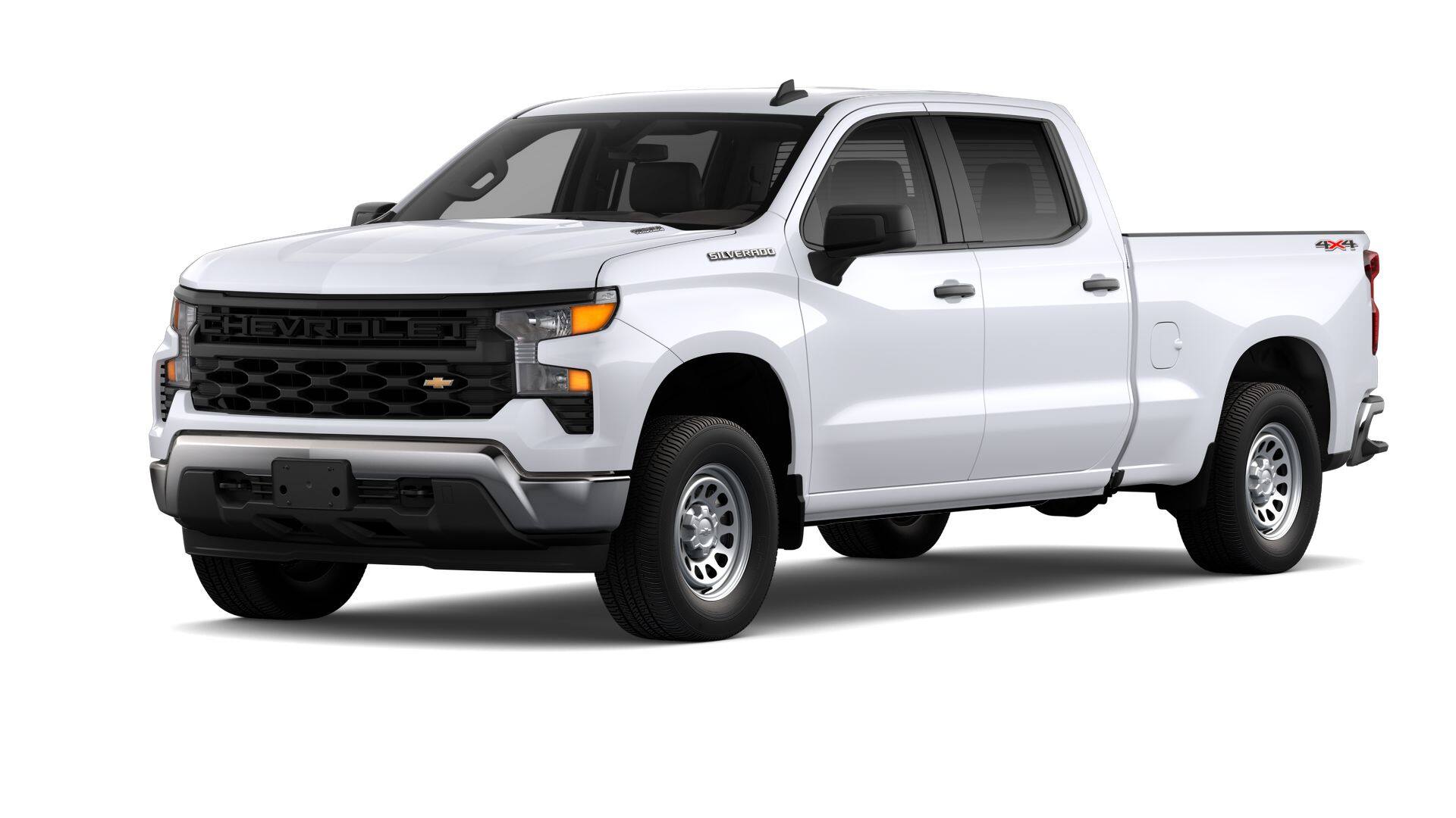 2025 Chevrolet Silverado 1500 WT Summit White 4D Crew Cab 2.7L I4 Turbocharged DOHC 16V LEV3-SULEV30 310hp 8-Speed Automatic 4WD 17/20 City/Highway MPG. Price includes $1000 Bonus Cash and $3000 Customer Cash.