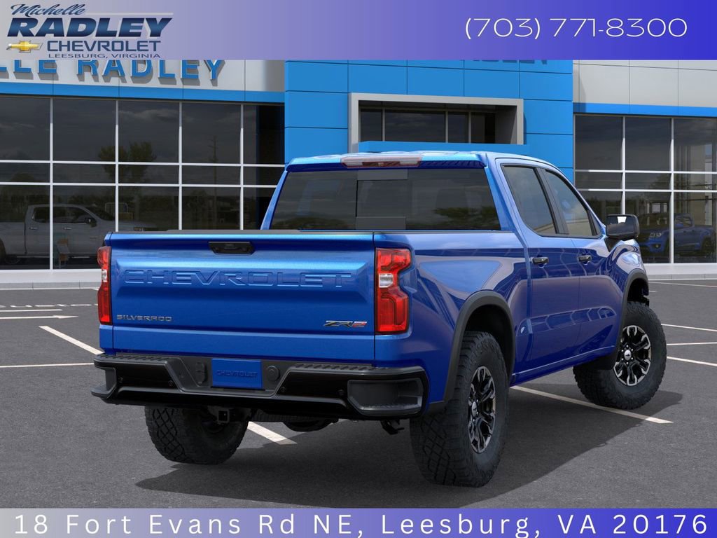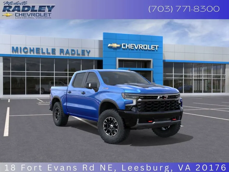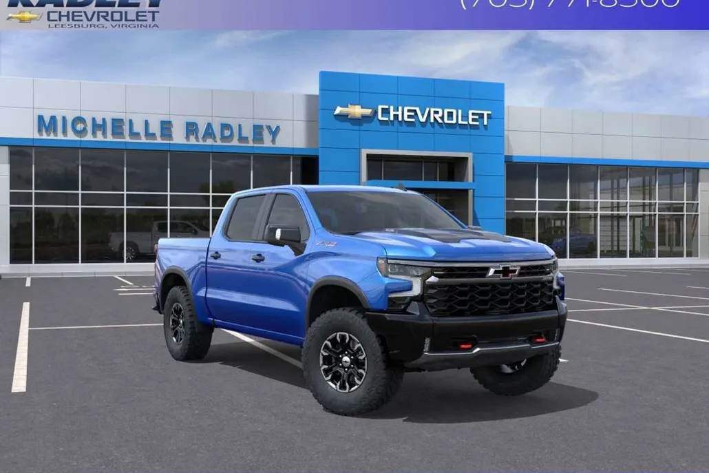 This new 2025 Chevrolet Silverado 1500 ZR2 is located at Michelle Radley Chevrolet. It features a powerful 6.2L EcoTec3 V8 engine, advanced technology, and a sleek Riptide Blue Metallic exterior. It offers a comfortable and spacious interior with premium leather seats. The truck is equipped with modern conveniences like a large touchscreen display, wireless Apple CarPlay, and a Bose Premium Sound System. Its robust capabilities make it ideal for both on-road comfort and off-road adventures.