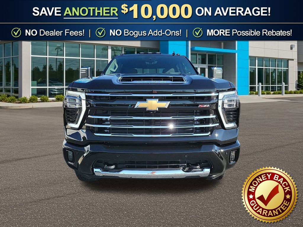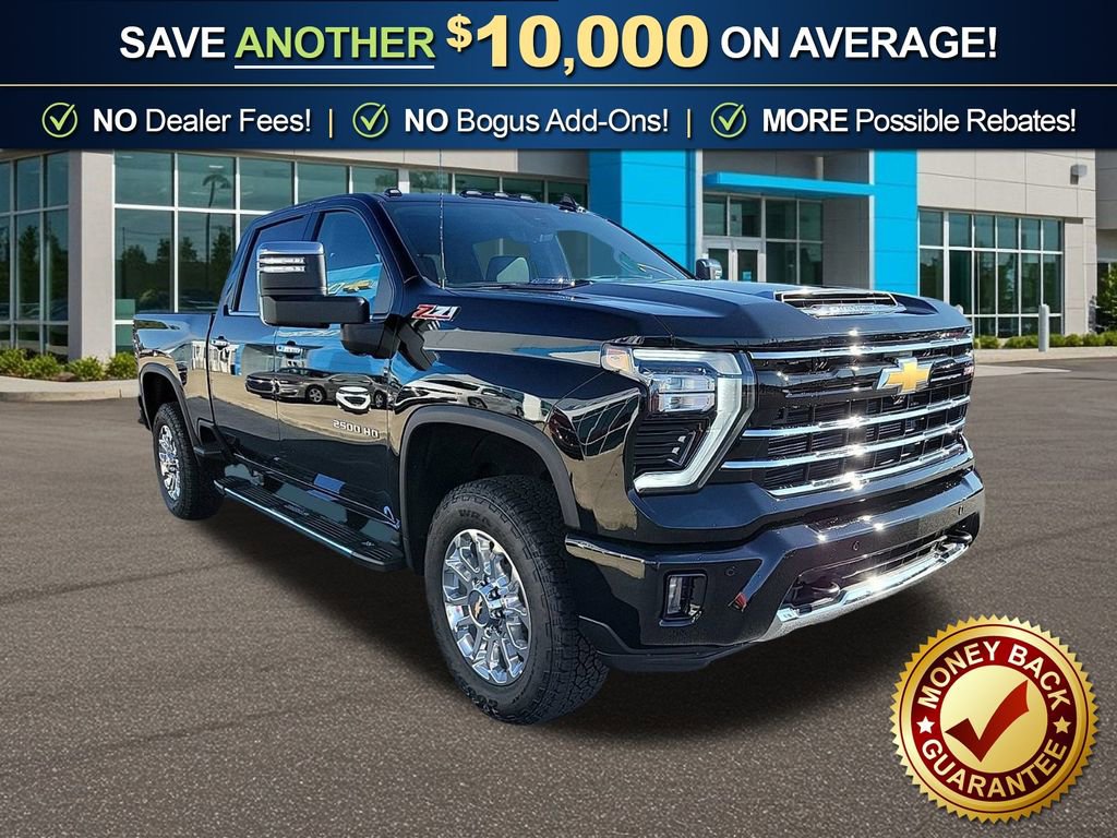 Dealer Discount of $6,869 off MSRP Black 2025 Chevrolet Silverado 2500HD LTZ NCT 4WD 10-Speed Automatic Duramax 6.6L V8 Turbodiesel 10-Speed Automatic, 4WD, Jet Black Leather, 10-Way Power Driver Seat Adjuster with Lumbar, 10-Way Power Passenger Seat Adjuster with Lumbar, 120-Volt Bed Mounted Power Outlet, 120-Volt Interior Power Outlet, 15 Diagonal Multicolor Head-Up Display, 170 Amp Alternator, 2 Charge/Data USB Ports Inside Center Console, 220 Amp Alternator, 3 Years SiriusXM, 4-Wheel Disc Brakes, 6 Speakers, 6-Speaker Audio System, 6 Rectangular Chromed Tubular Assist Steps, 720 Cold-Cranking Amps Heavy-Duty Battery, ABS brakes, Adaptive Cruise Control, Air Conditioning, Alloy wheels, AM/FM radio: SiriusXM with 360L, Apple CarPlay/Android Auto, Auto High-beam Headlights, Auto-dimming door mirrors, Auto-Dimming Inside Rear-View Mirror, Auto-dimming Rear-View mirror, Automatic temperature control, Bed View Camera with Two Trailer Camera Provisions, Black Chevytec Spray-on Bedliner, Bluetooth For Phone, Body-Color Front Bumper, Body-Color Rear Bumper, BOSE Premium 7-Speaker Sound System, Brake assist, Bumpers: chrome, Chevrolet Connected Access Capable, Chrome Door Handles, Chrome Mirror Caps, Color-Keyed Carpeting Floor Covering, Compass, Deep-Tinted Glass, Delay-off headlights, Driver door bin, Driver Memory, Driver vanity mirror, Dual front impact airbags, Dual front side impact airbags, Durabed Pickup Bed, Electric Rear-Window Defogger, Electronic Cruise Control with Set and Resume Speed, Electronic Stability Control, Emergency communication system: OnStar, Engine Block Heater, Exhaust Brake, EZ Lift Power and Other Suspension Packages. Price includes $1000 - Chevrolet Consumer Cash Program. Exp. 03/02/2026.