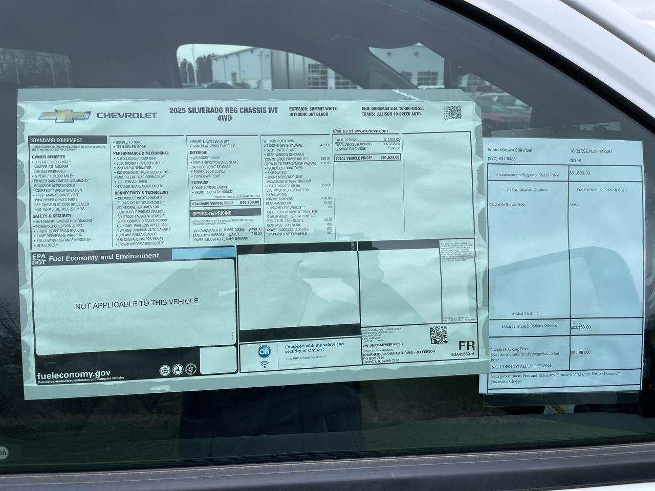 10-Speed Automatic, 4WD, Jet Black Vinyl. We try to make everything as easy as possible for you, our guest. Reach out to us in any fashion you like for information or to start your process. We look forward to serving you!! Final price may differ based on program eligibility and residency requirements. Some rebates and discounts may not be eligible with special finance, special finance promotions, factory discount plans or other plans. SOME DISCOUNTS OR REBATES REQUIRE FINANCING WITH G.M. FINANCIAL, with approved credit. You may contact a Fredericktown Chevrolet Sales Associate for further details prior to your visit or to confirm with us any details that may affect pricing or terms important to your purchase. OUT OF STATE RESIDENTS ARE RESPONSIBLE FOR THE PASSING/FAILING OF OTHER STATES INSPECTIONS. WE HAVE NO KNOWLEDGE OF OTHER STATES INSPECTION REQUIREMENTS.