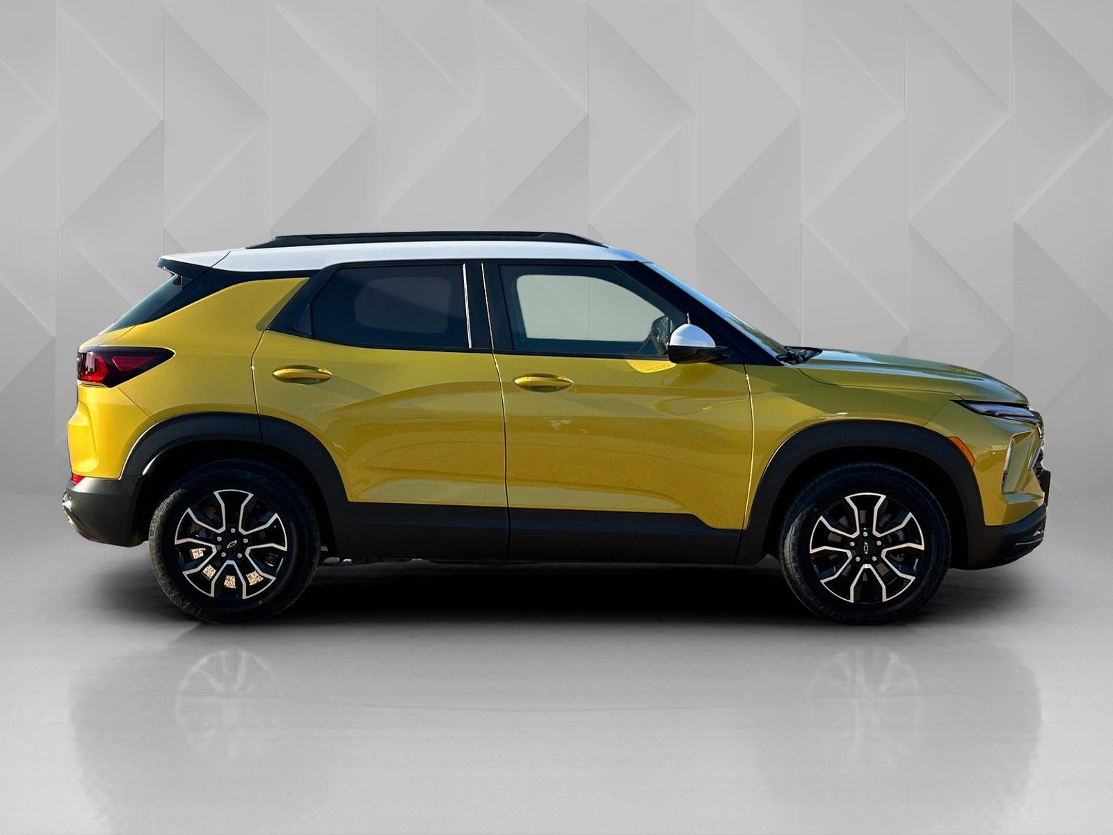 The 2025 Chevrolet Trailblazer ACTIV offers a blend of comfort, technology, and performance. With its ECOTEC 1.3L Turbo engine and front wheel drive, this SUV is designed for both city driving and off-road adventures. The interior features a Jet Black/Artemis color scheme with Yellow stitching, advanced driver assistance systems, and a premium Bose audio system. The exterior is Nitro Yellow Metallic, complemented by a Summit White roof and 17" High Gloss Black aluminum wheels. This vehicle is equipped with the latest in connectivity and safety, making it a versatile choice for a variety of needs.