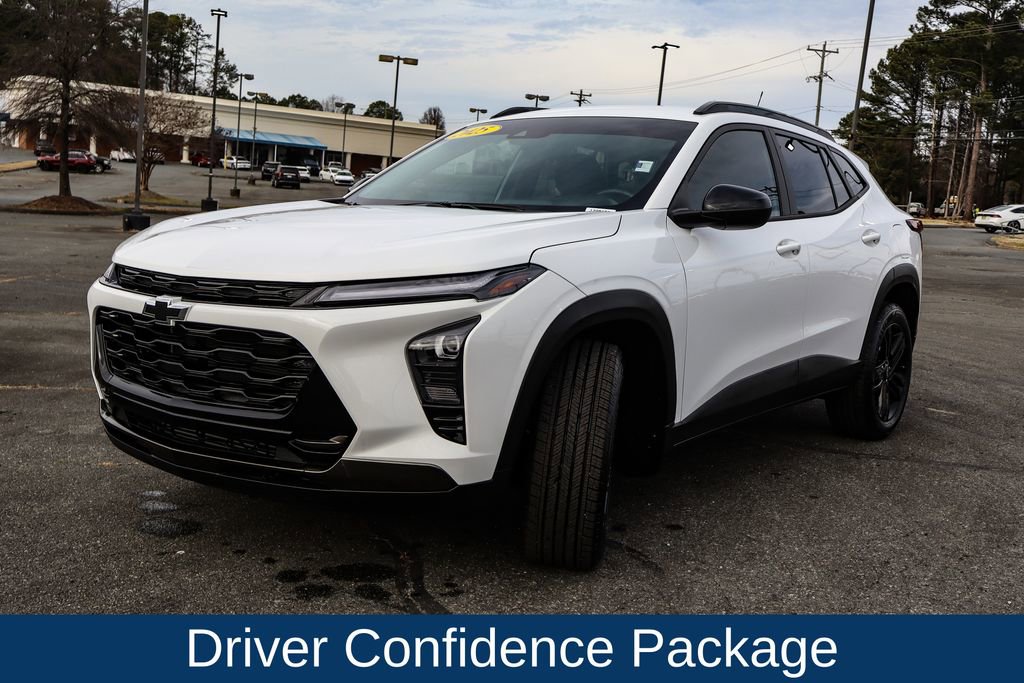 Check out this 2025 Chevrolet Trax Activ available at Parks Chevrolet Charlotte. Offered at just $24000, this Chevrolet Trax wont last long. This FWD Chevrolet Trax Activ is powered by a 1.2L I3 DI Turbocharged DOHC 12V LEV3-ULEV70 137hp with only 4002 miles. CARFAX One-Owner. Clean CARFAX. 2025 Chevrolet Trax Activ Activ FWD 1.2L I3 DI Turbocharged DOHC 12V LEV3-ULEV70 137hp, Summit White, Jet Black With Yellow Accents Premium Synthetic, 6-Speaker Audio System Feature, 8-Way Power Driver Seat Adjuster, ABS brakes, Adaptive Cruise Control, Alloy wheels, AM/FM radio: SiriusXM, Delay-off headlights, Driver Confidence Package, Fully automatic headlights, Heated Driver and Front Passenger Seats, Lane Change Alert with Side Blind Zone Alert, Preferred Equipment Group 1SA, Premium audio system: Chevrolet Infotainment 3, Radio: AM/FM Stereo Audio System, Rear Cross-Traffic Alert, Rear Park Assist, Remote Keyless Entry, SiriusXM Trial Subscription, Steering wheel mounted audio controls, Wheels: 18 Black-Painted Aluminum. 28/32 City/Highway MPG.