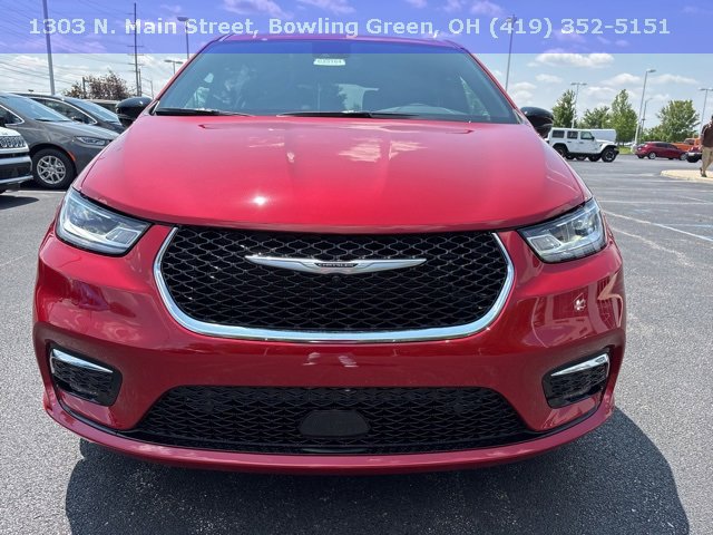 Red Hot Pearlcoat 2025 Chrysler Pacifica Select AWD 9-Speed 948TE Automatic 3.6L V6 24V VVT 10.1" Touchscreen Display, 18" x 7.5" Painted Aluminum Wheels, 3rd row seats: split-bench, 4-Wheel Disc Brakes, 4G LTE Wi-Fi Hot Spot, 6 Speakers, ABS brakes, Air Conditioning, Alloy wheels, AM/FM radio: SiriusXM, Apple CarPlay, Apple CarPlay/Android Auto, Auto-dimming Rear-View mirror, Automatic temperature control, AWD Suspension, Black Seats, Brake assist, Bumpers: body-color, Caprice Leatherette Bucket Seats, Compass, Delay-off headlights, Disassociated Touchscreen Display, Driver door bin, Driver vanity mirror, Driver's Seat Mounted Armrest, Dual front impact airbags, Dual front side impact airbags, Electronic Stability Control, Emergency communication system: Chrysler Connect, For Details, Visit DriveUconnect.com, Four wheel independent suspension, Front anti-roll bar, Front Bucket Seats, Front dual zone A/C, Front fascia air deflectors, Front fog lights, Front reading lights, Fully automatic headlights, Garage door transmitter, Google Android Auto, GPS Antenna Input, Heated door mirrors, Heated front seats, Heated steering wheel, Illuminated entry, Integrated Active Noise Cancellation, Integrated Center Stack Radio, Knee airbag, Low tire pressure warning, Memory seat, Occupant sensing airbag, Outside temperature display, Overhead airbag, Overhead console, Panic alarm, Parallel & Perpendicular Park Assist w/Stop, ParkSense Front/Rear Park Assist w/Stop, ParkView Rear Back-Up Camera, Passenger door bin, Passenger seat mounted armrest, Passenger vanity mirror, Power door mirrors, Power driver seat, Power Front/Fixed Rear Full Sunroof, Power Liftgate, Power Open/Close Shade, Power steering, Power windows, Quick Order Package 27L, Radio data system, Radio: Uconnect 5 w/10.1" Display, Rain sensing wipers, Rear air conditioning, Rear reading lights, Rear window defroster, Rear window wiper, Reclining 3rd row seat, Remote keyless entry, Safety Sphere, Security system, SiriusXM Guardian - Included Trial (B), Speed control, Split folding rear seat, Spoiler, Steering wheel mounted audio controls, Tachometer, Telescoping steering wheel, Tilt steering wheel, Traction control, Trip computer, Turn signal indicator mirrors, USB Host Flip.