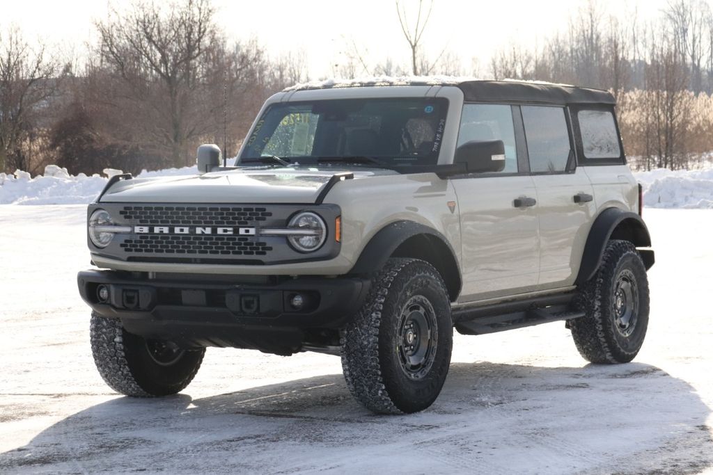 $3,000 off MSRP! 2025 Desert Sand Ford Bronco Badlands 4WD 10-Speed Automatic 2.7L EcoBoost V6 This Ford Bronco has many features and is well equipped, Bronco Badlands, 2-Door Intelligent Access w/Lock/Unlock, 360-Degree Camera, 4.7 Final Drive Ratio, Adaptive Cruise Control, Ambient Footwell Lighting, Brake assist, Connected Navigation, Dr & Pass Illuminated Sliding Visor Vanity Mirrors, Dual Smart Charging USB Ports, Dual-Zone Electronic Automatic Temperature Control, Electronic Stability Control, Equipment Group 334A Lux Package, Evasive Steering Assist, Exterior Parking Camera Rear, Front fog lights, Front Parking Sensors, Front Row Heated Seats, Fully automatic headlights, Heated steering wheel, High Clearance Fender Flares, High Clearance Suspension, Information on Demand Panel, Marine Grade Vinyl Heated Bucket Seats, Position-Sensitive Bilstein Shock Absorbers, Power Outlet - Back Side of Center Floor Console, Radio: B&O Sound System by Bang & Olufsen, Raptor-Style Running Board, Rear Parking Sensors, Sasquatch Package, Sideview Mirrors, Speed control, Universal Garage Door Opener, Wheels: 17" Carbonized Gray Painted Aluminum. Price includes: $1000 - Bonus Customer Cash. Exp. 01/05/2026 $1000 - Final Days Mega Bonus Cash. Exp. 01/02/2026