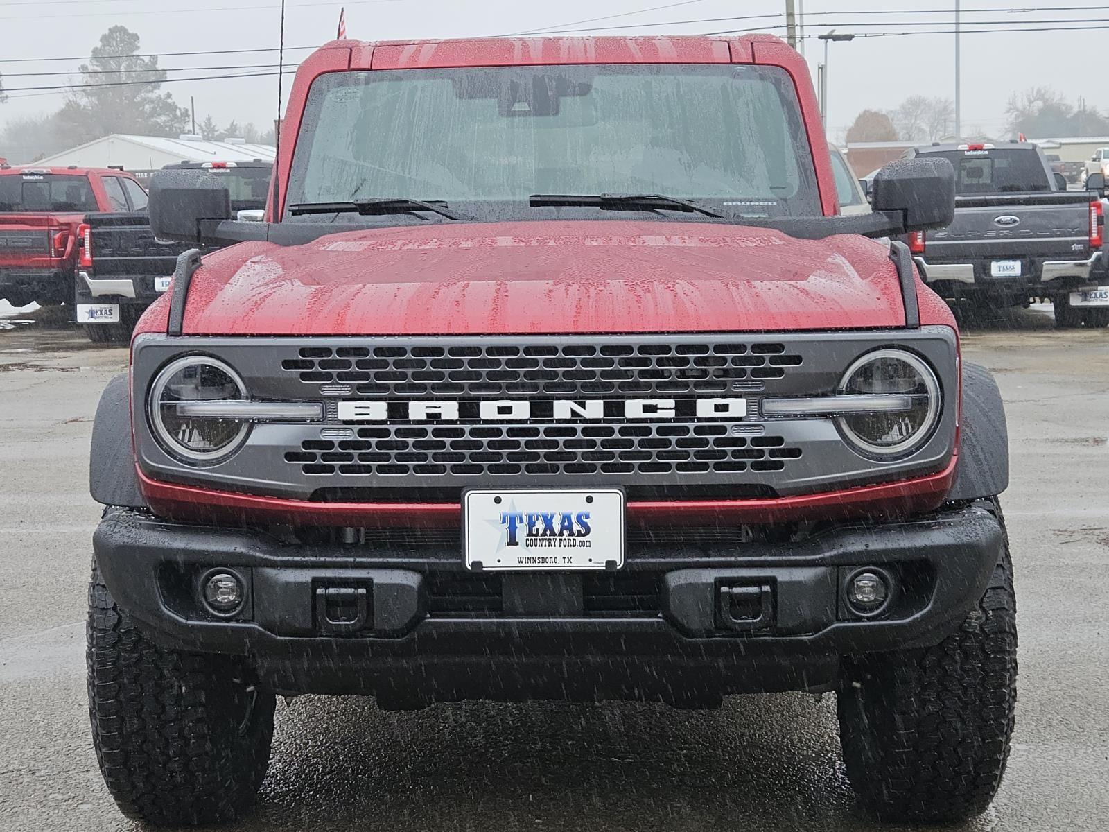 Our Ruby Red Metallic Tinted Clearcoat 2025 Ford Bronco Badlands has 9 miles with a Black Onyx interior color. Stock Number B68116. This beautiful Ruby Red Metallic Tinted Clearcoat 2025 Ford Bronco Badlands located at Texas Country Ford has been thoroughly inspected by our certified Ford factory-trained service technicians, and ready for immediate delivery. Texas Country Ford offers a family friendly, hassle free environment. Absolutely no hidden fees or outrageous service charges. What you see is what you pay. We strive to offer both the best prices and best customer service in East Texas. Call (903) 342-3700 for more info. Texas Country Ford | A Country Deal with a Country Feel! | 321 East Coke Rd Winnsboro TX 75494 | 903-342-3700.