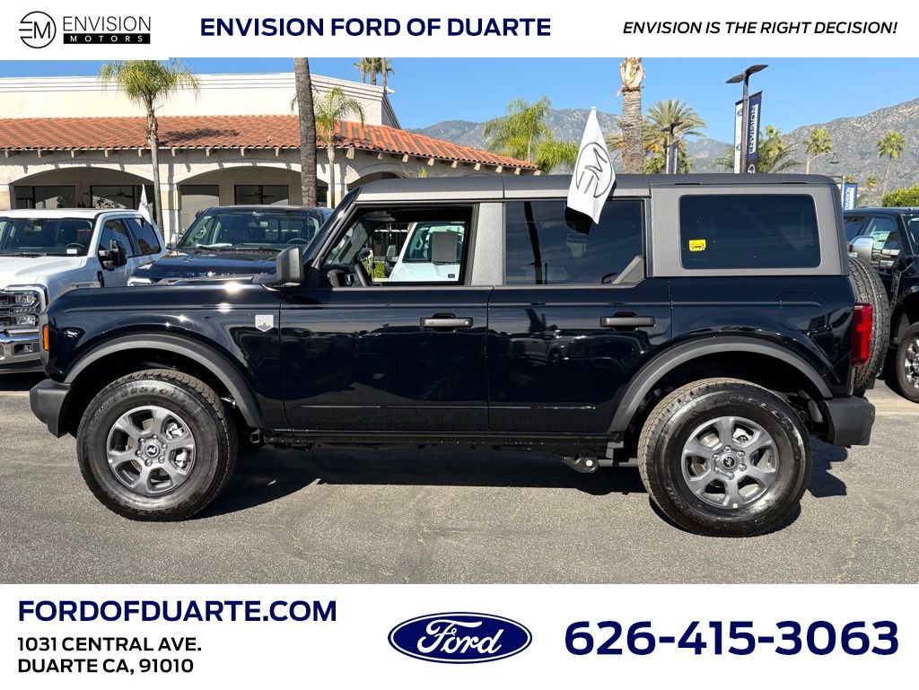 Recent Arrival! Shadow Black 2025 Ford Bronco Big Bend 4WD 10-Speed Automatic 2.3L EcoBoost I-4. Call for availability or visit Envision Ford & Lincoln of Duarte at 1031 Central Ave, Duarte, CA 91010. We look forward to serving you! Price includes $1000 Final Days Mega Bonus Cash and $2000 Retail Bonus Cash. Envision Ford of Duarte is dedicated to your satisfaction before, during, and after your purchase.