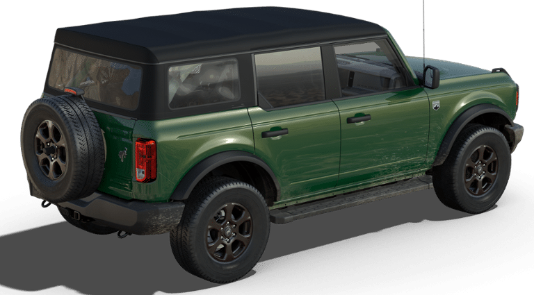 Eruption Green Metallic 2025 Ford Bronco Big Bend 4WD 10-Speed Automatic 2.3L EcoBoost I-4 Bluetooth Connectivity, Ford Pass - Remote Start, Android Auto or Apple Car Play, Front and rear weather tech mats, 2-Door Intelligent Access w/Lock/Unlock, 3.73 Axle Ratio, 4-Wheel Disc Brakes, 7 Speakers, ABS brakes, Air Conditioning, Alloy wheels, AM/FM radio: SiriusXM with 360L, AM/FM Stereo, Ambient Footwell Lighting, Auto High-beam Headlights, Brake assist, Cloth Bucket Seats, Compass, Connected Navigation, Delay-off headlights, Dr & Pass Illuminated Sliding Visor Vanity Mirrors, Driver door bin, Driver vanity mirror, Dual front impact airbags, Dual front side impact airbags, Dual Smart Charging USB Ports, Dual-Zone Electronic Automatic Temperature Control, Electronic Stability Control, Emergency communication system: 911 Assist, Equipment Group 222A Mid Package, Exterior Parking Camera Rear, Front anti-roll bar, Front Bucket Seats, Front Center Armrest, Front reading lights, Front wheel independent suspension, Fully automatic headlights, Hard Top Sound Deadening Headliner, Heated door mirrors, Illuminated entry, Integrated roll-over protection, Internet access capable: FordPass Connect, Leather Shift Knob, Low tire pressure warning, Occupant sensing airbag, Outside temperature display, Overhead airbag, Overhead console, Panic alarm, Passenger door bin, Passenger vanity mirror, Power door mirrors, Power Outlet - Back Side of Center Floor Console, Power steering, Power windows, Radio data system, Rear Parking Sensors, Rear-Window Defroster & Washer, Remote keyless entry, Security system, Side Step, SiriusXM w/360L, Speed control, Split folding rear seat, Steering wheel mounted audio controls, SYNC 4, Tachometer, Telescoping steering wheel, Tilt steering wheel, Traction control, Trailer Tow Package (DIO), Trip computer, Variably intermittent wipers, Wheels: 17" Carbonized Gray-Painted Aluminum.
