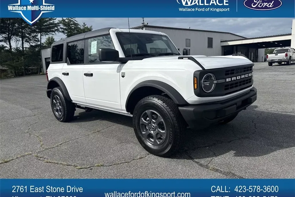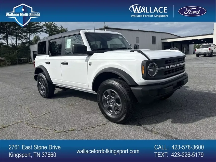 Recent Arrival! Wallace Ford is Kingsport is pleased to offer this terrific-looking 2025 Ford Bronco in Oxford White. This vehicle has passed our comprehensive inspection and comes with the following features; Oxford White 2025 Ford Bronco Big Bend 4WD 10-Speed Automatic 2.3L EcoBoost I-4. We appreciate you taking the time today to visit our web site. Our goal is to give you an interactive tour of our new and used inventory, as well as allow you to conveniently get a quote, schedule a service appointment, or apply for financing. We service all makes and models, and sell all over the state of Tennessee, Virginia, North Carolina and South East Kentucky. We are located in Kingsport and close by to Johnson City, Bristol, Gate City, Big Stone Gap, Norton and Wise, Virginia. At our dealership, we have devoted ourselves to helping and serving our customers to the best of our ability. We believe the cars we offer are the highest quality and ideal for your life needs. We understand that you rely on our web site for accurate information, and it is our pledge to deliver you relevant, correct, and abundant content. Please take the time to visit us online at www.wallacefordofkingsport.com or call us at 423-830-2289!