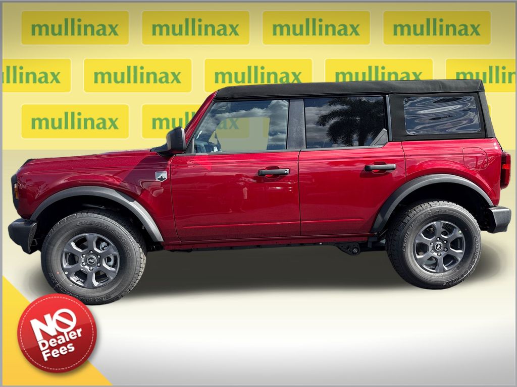 2025 Ford Bronco Big Bend 4-Door 4x4, Ruby Red Metallic Tinted Clearcoat, 2.3L EcoBoost I-4, 10-Speed Automatic, SYNC 4, 12" LCD Center Touchscreen, FordPass Connect, SiriusXM w/ 360L, Digital Instrument Cluster, Terrain Management w/ G.O.A.T. Modes, Rear View Camera, Pre-Collision Assist w/ AEB, Push-Button Start, Auto High-Beam Headlamps, Heated Power Mirrors, 17" Gray-Painted Aluminum Wheels, P255/75R17 All-Terrain (32") Tires, 3.73 Rear Axle (Open Diff), Soft Top w/ Prep Kit, Carpet Flooring, Cruise Control, Smart Charging USB Ports, Rear A/C & Heat Ducts, 60/40 Split-Fold Rear Seat, Tow Hooks (Front & Rear), AdvanceTrac w/ RSC, Tire Pressure Monitoring System, Perimeter Alarm, Tool Kit for Door/Top Removal. At Mullinax Ford we offer customers Upfront pricing and NEVER charge a Dealer Fee. You'll always get the best price instantly, because it's right there on the windshield of your chosen vehicle. There's no hassle, and our Upfront® pricing is completely transparent. At some dealers, you'll hear about add-on fees like Dealer Fees, service fees, prep fees, administrative fees and handling fees. There's none of that at Mullinax Ford of West Palm Beach. Instead, we save our clients as much as $1000 that they'd be forced to spend elsewhere. We also offer you comprehensive six-store advantage. What does that mean? Between all of our dealerships, you have thousands of vehicles to choose from, and we have the largest inventory of new Ford models in West Palm Beach. If you want a new Ford, there's only one place to shop in Palm Beach -- Mullinax Ford. We want to make sure you're completely satisfied with your experience at Mullinax Ford. Recent Arrival! Price includes: $2500 - Retail Customer Cash. Exp. 03/31/2026