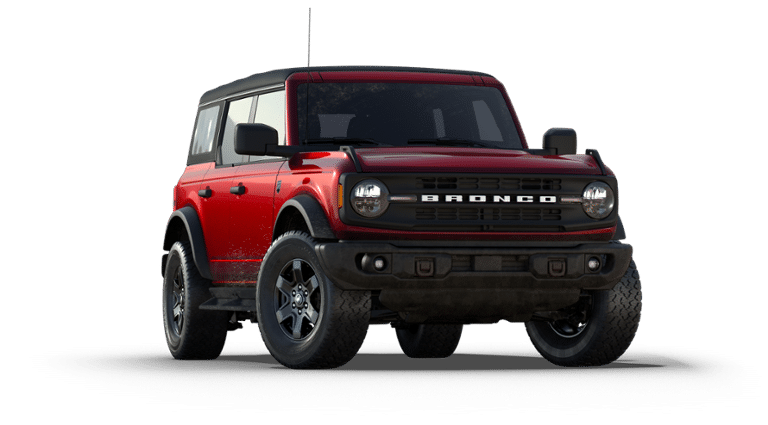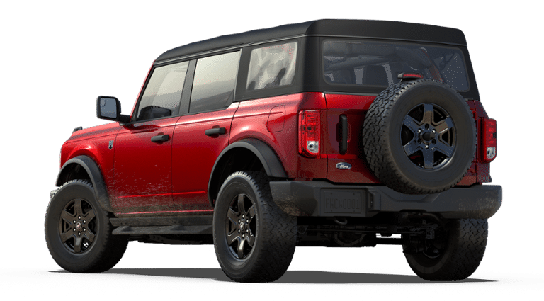 The 2025 Ford Bronco Big Bend EcoBoost Turbo I4 275hp 315ft. lbs. features a Ruby Red Metallic Tinted Clearcoat exterior and Black Onyx interior. It is equipped with a 10-speed automatic transmission, EcoBoost 2.3L Turbo I4 engine, and advanced 4x4 with automatic on demand engagement. The vehicle includes features like wireless phone connectivity, fully automatic headlights, SYNC 4 with Enhanced Voice Recognition, and Ford Co-Pilot360. The Bronco is designed for comfort, reliability, and off-road capability, offering a blend of nostalgia and new technology.