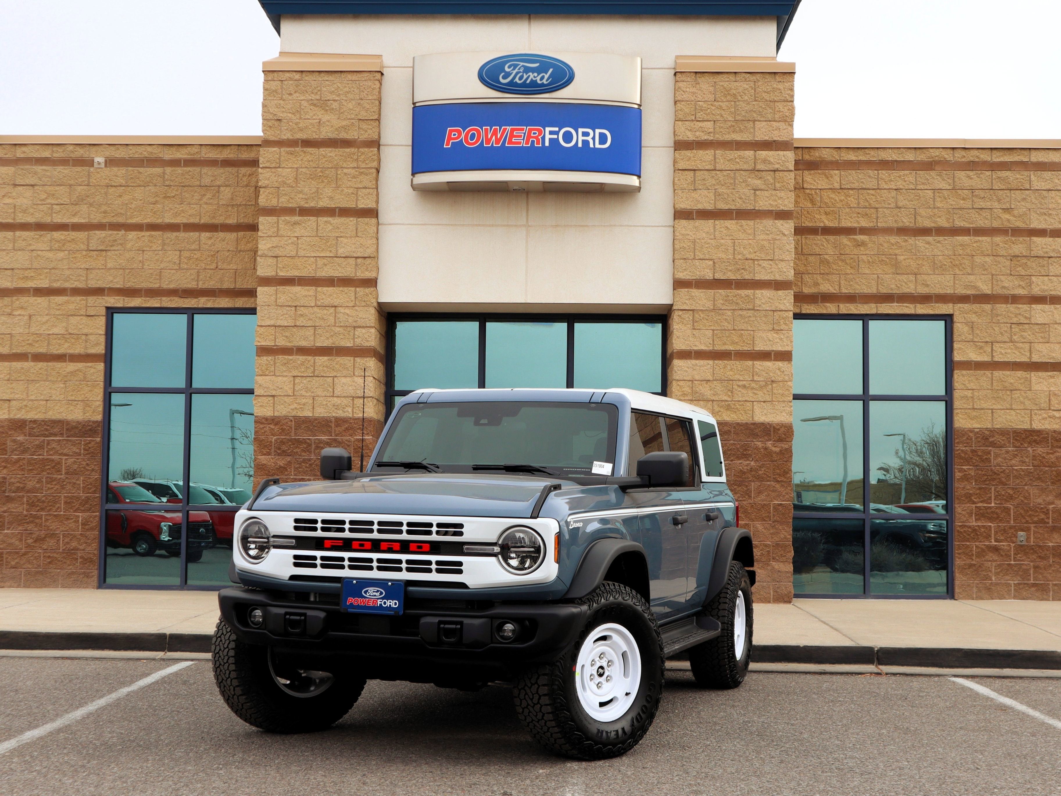 Your 2025 Ford Bronco Heritage 4 Door 4x4 in Azure Gray Metallic Tri Coat is pure retro swagger with a modern wild streak, the automotive equivalent of an Albuquerque local who wears vintage boots but also knows all the best new breweries. Powered by the 2.7L EcoBoost V6 and 10 speed automatic, it has the muscle for Sandia climbs, riverbank trails and any dirt road that calls your name. The Heritage Package brings that classic throwback style with Oxford White wheels, a white painted hard top and the vintage Ford grille that instantly turns heads on Central. Underneath the charm, you get serious capability thanks to Advanced 4x4 and the Sasquatch package with 35 inch LT315 tires, locking diffs and beefed up suspension, making ruts, rocks and arroyos feel like minor suggestions instead of obstacles. Inside, the plaid Navy Onyx cloth seats deliver peak nostalgic vibes while the 12 inch touchscreen, push button start and modern driver assists keep things firmly in the present. With tow hooks, a trailer tow package and G.O.A.T. modes ready for every terrain, this Bronco is built for adventure with style to spare. Ready for a test drive? Visit Power Ford or call us at 505-933-7883. Power Ford – On the affordable side of Albuquerque! #MyFordDealer. Price does not include Tax, title and license.