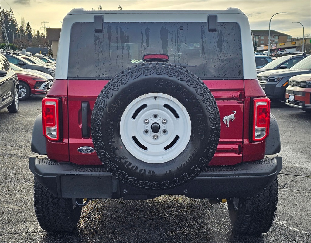 2025 Ford Bronco Heritage Edition 2.7L EcoBoost V6 10-Speed Automatic 4WD 4D Sport Utility Ruby Red Metallic Tinted Clearcoat. To see more quality vehicles like this one right here just click on http://www.fordofkirkland.com or dial (425) 500-1074. Prices good through 5-31-2025. Kirkland Price includes:$2500 - Retail Customer Cash.