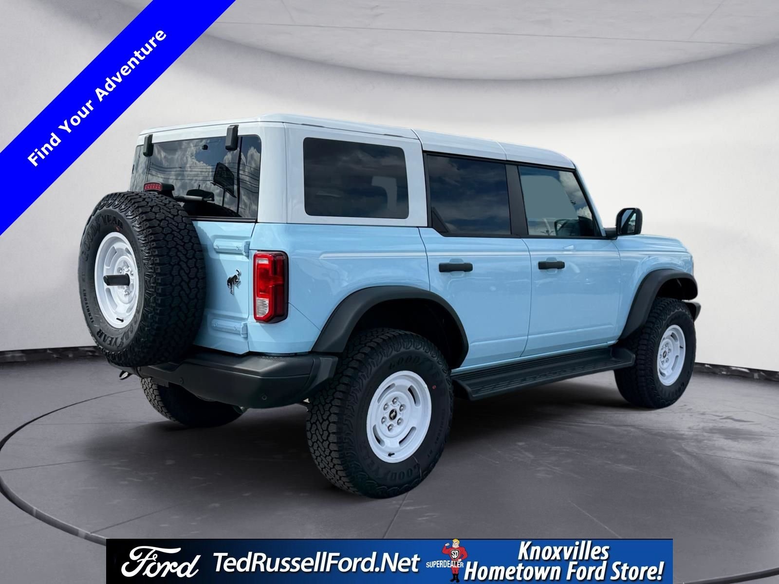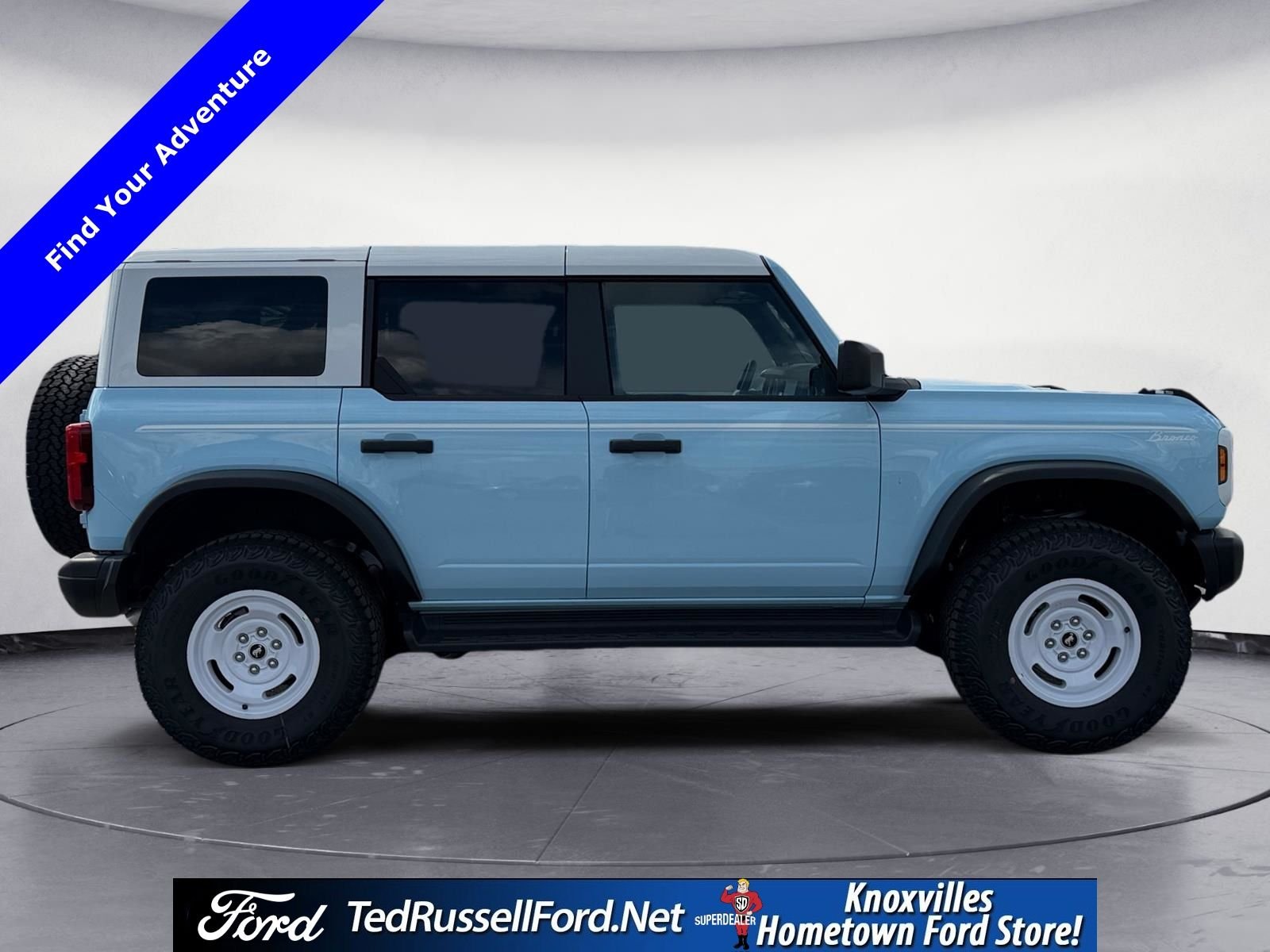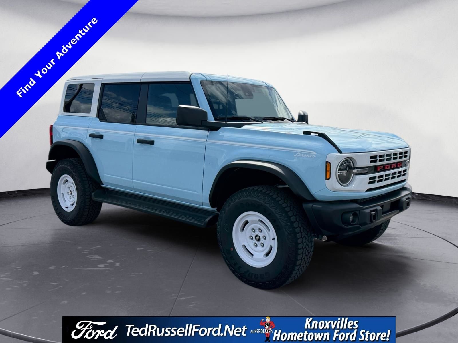 2025 Ford Bronco Heritage Edition Blue 2.7L EcoBoost V6 Ted Russell. We offer Market Based Pricing so please call to check on the availability of this vehicle. We'll Buy your Vehicle, even if you Don't Buy Ours. Please see dealer for details. *LIFETIME POWERTRAIN WARRANTY ON ALL NEW VEHICLES SOLD!! Price includes $2500 - Retail Customer Cash. Exp. 03/31/2026.