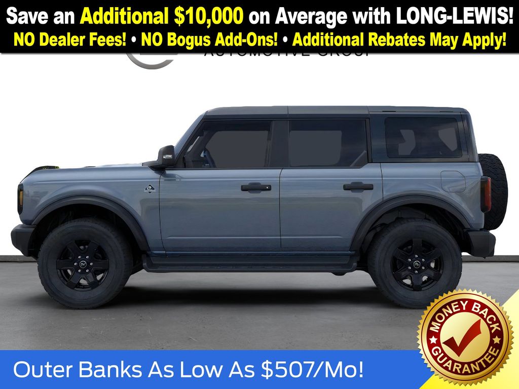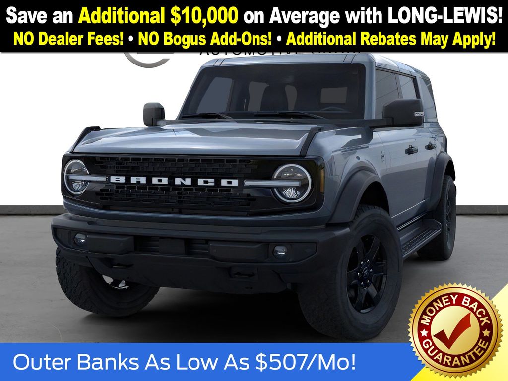Dealer Discount of $2,147 off MSRP Azure Gray Metallic Tri-Coat 2025 Ford Bronco Outer Banks NFT 4WD 10-Speed Automatic 2.7L EcoBoost V6. Recent Arrival! Price includes: $2500 - Retail Customer Cash. Exp. 03/31/2026.
