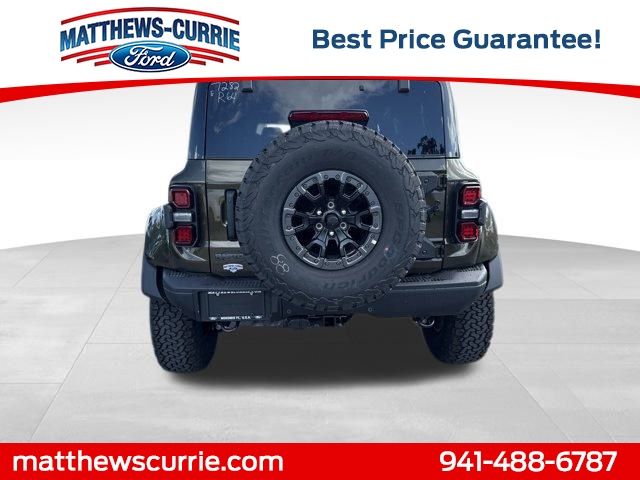 This 2025 Ford Bronco Raptor in Shelter Green features $11,168 off MSRP! $7,777 below Invoice! Online price does not include dealer installed accessories and options, upgrades or up-fits. All prices are plus tax, tag, title, $349 electronic filing fee & $999 dealer fee. This charge represents cost and profit to the dealer for items such as, inspecting, cleaning, adjusting vehicles and preparing documents related to the sale. While every reasonable effort is made to ensure the accuracy of this information, we are not responsible for any pricing errors or pricing and information omissions contained on these pages. Pictures and descriptions are for illustration purposes only. Please call or email dealer for complete details, to verify availability and to verify all online information. Must finance with Matthews Currie Ford to get advertised savings.