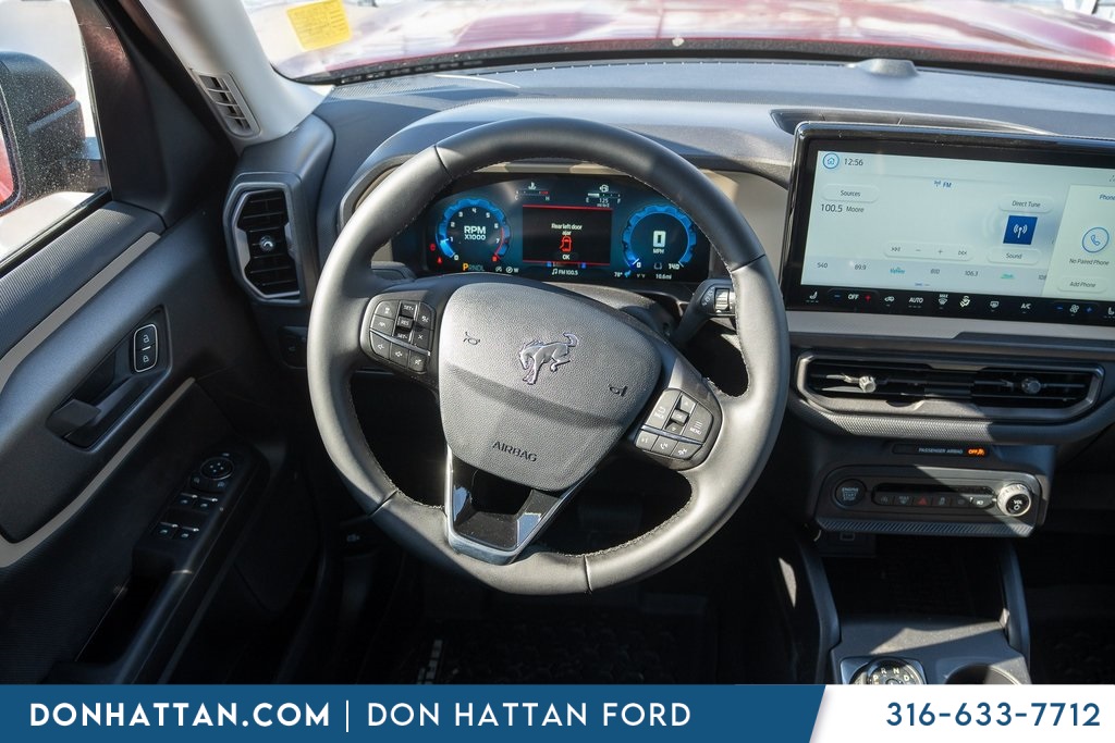 Don Hattan Ford is honored to offer this wonderful 2025 Ford Bronco Sport Big Bend in Ruby Red Metallic Tinted Clearcoat, beautifully equipped with Convenience Package (Front Driver/Passenger Seat Back Map Pockets, Heated 8-Way Power Driver's Seat, LED Fog Lamps, Premium Wrapped Steering Wheel, and Universal Garage Door Opener (UGDO)), 4-Wheel Disc Brakes, 6 Speakers, ABS brakes, Air Conditioning, Alloy wheels, AM/FM radio: SiriusXM, Auto High-beam Headlights, Automatic temperature control, Brake assist, Cloth w/Easy-to-Clean Front Bucket Seats, Compass, Delay-off headlights, Driver door bin, Driver vanity mirror, Dual front impact airbags, Dual front side impact airbags, Electronic Stability Control, Emergency communication system: SYNC 4 911 Assist, Four wheel independent suspension, Front anti-roll bar, Front Bucket Seats, Front Center Armrest, Front reading lights, Fully automatic headlights, Heated door mirrors, Illuminated entry, Knee airbag, Low tire pressure warning, Occupant sensing airbag, Outside temperature display, Overhead airbag, Overhead console, Panic alarm, Passenger door bin, Passenger vanity mirror, Power door mirrors, Power steering, Power windows, Radio data system, Rear anti-roll bar, Rear Parking Sensors, Rear reading lights, Rear seat center armrest, Rear window defroster, Rear window wiper, Remote keyless entry, Security system, SiriusXM, Speed control, Speed-sensing steering, Speed-Sensitive Wipers, Split folding rear seat, Steering wheel mounted audio controls, SYNC 4 w/Enhanced Voice Recognition, Tachometer, Telescoping steering wheel, Tilt steering wheel, Traction control, Trip computer, Variably intermittent wipers, and Wheels: 17" Carbonized Gray-Painted Aluminum! Bluetooth Backup Camera. Convenience Package, Front Driver/Passenger Seat Back Map Pockets, Heated 8-Way Power Driver's Seat, LED Fog Lamps, Premium Wrapped Steering Wheel, Universal Garage Door Opener (UGDO). 2025 Big Bend 4WD 8-Speed Automatic 1.5L EcoBoost.