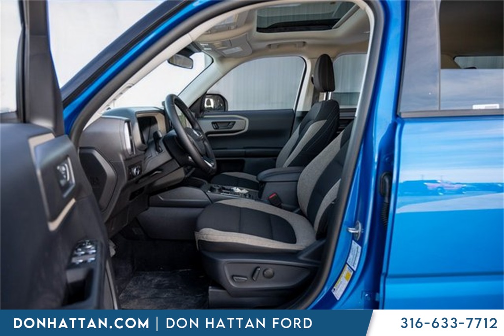Don Hattan Ford is excited to offer this beautiful 2025 Ford Bronco Sport Big Bend in Velocity Blue Metallic, beautifully equipped with Convenience Package (Front Driver/Passenger Seat Back Map Pockets, Heated 8-Way Power Driver's Seat, LED Fog Lamps, Premium Wrapped Steering Wheel, and Universal Garage Door Opener (UGDO)), Power Moonroof, Wheels: 17" Carbonized Gray-Painted Aluminum. 2025 Big Bend 4WD 8-Speed Automatic 1.5L EcoBoost.