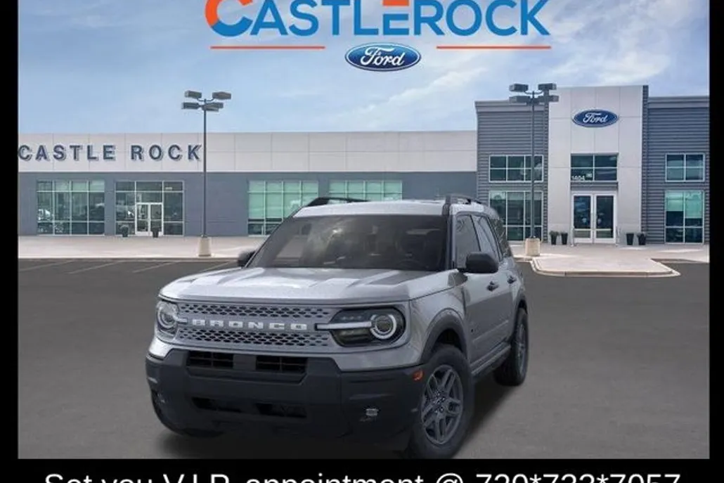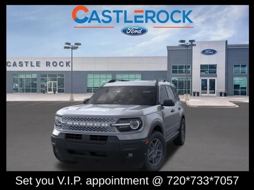 Carbonized Gray Metallic 2025 Ford Bronco Sport Big Bend 4WD 8-Speed Automatic 1.5L EcoBoost 25/30 City/Highway MPG Castle Rock Ford has been serving the community for decades. Price plus TT&L, fees, $799 dealer doc fee and $399 for LoJack. Call today to schedule a test drive. Price includes: $1000 - Retail Bonus Cash. Exp. 09/02/2025