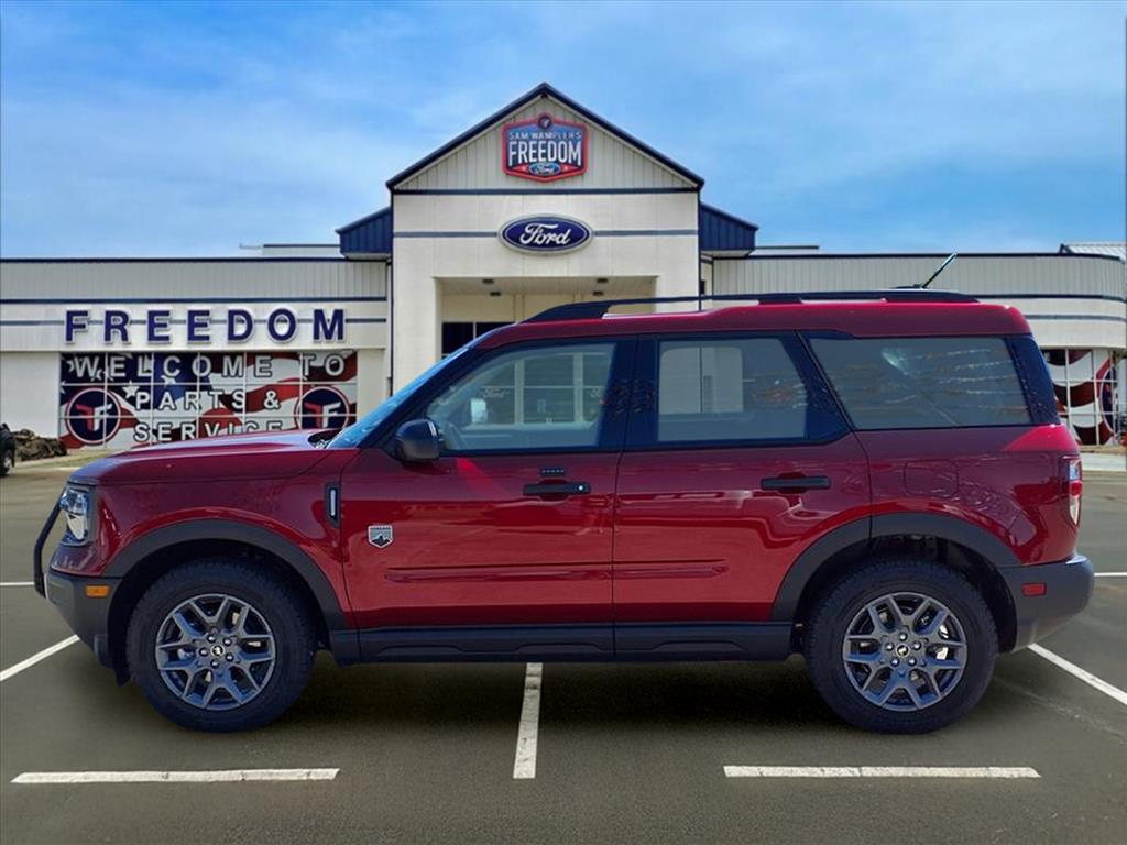Ruby Red Metallic 2025 Ford Bronco Sport Big Bend 4WD 8-Speed Automatic 1.5L EcoBoost®. Call (918) 423-2800 to visit with one of our sales associates to schedule a test drive or any questions you may have on this particular vehicle or come on out and check out our inventory and see what sets our dealership apart from all the rest. From the moment you walk in you will experience the Sam Wampler’s Freedom Ford difference. 25/30 City/Highway MPG. Price includes $2000 Retail Customer Cash. Exp. 03/31/2026.