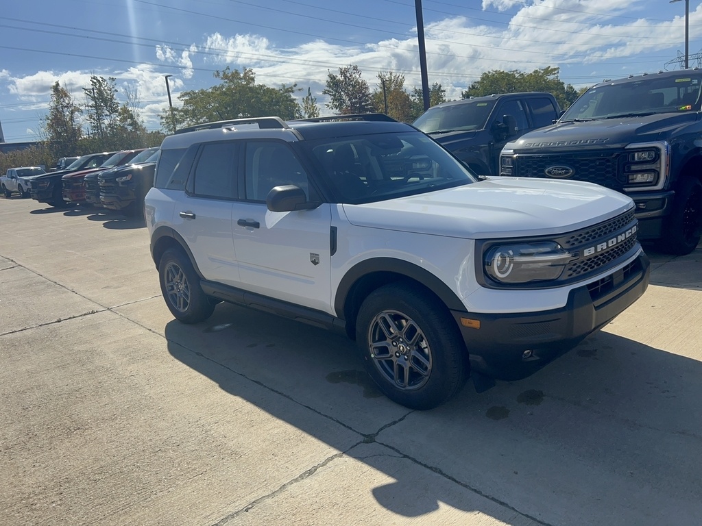 Experience the all-new 2025 Ford Bronco Sport Big Bend 4x4 in classic white, with only 1 mile on the odometer! Powered by a robust EcoBoost 1.5L Turbo I3 engine paired to an 8-speed automatic transmission, this SUV is built for adventure and everyday driving. Enjoy advanced AWD with Terrain Management System featuring G.O.A.T. Modes, HOSS 1.0 off-road suspension, and 17 Carbonized Gray wheels on all-season tires for confidence on any terrain. Stay safe and connected with Ford Co-Pilot360, Blind Spot Information System (BLIS), Lane-Keeping System, Pre-Collision Assist, rear camera, and adaptive cruise control. Inside, you'll find heated front seats, an 8-way power driver's seat, premium wrapped steering wheel, and a power moonroof for an elevated driving experience. Tech features include a 13.2 touchscreen with SYNC 4, wireless Apple CarPlay/Android Auto, SiriusXM, and wireless device charging. Split-folding rear seats, roof rails, and ample cargo space make this Bronco Sport as practical as it is stylish. Backed by Ford's comprehensive warranty. Don't miss your chance to own a near-zero-mile Bronco Sport loaded with comfort, tech, and safety.