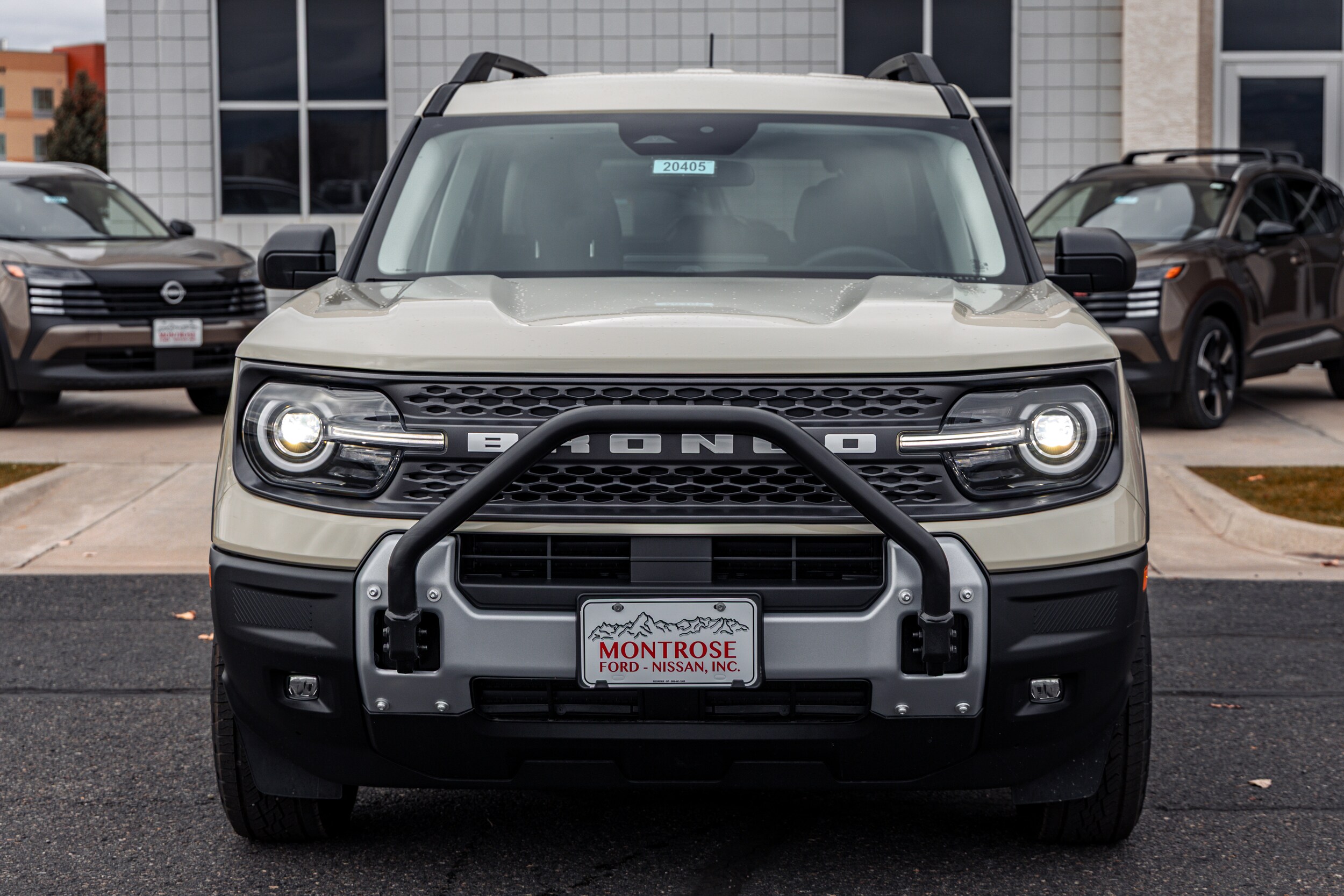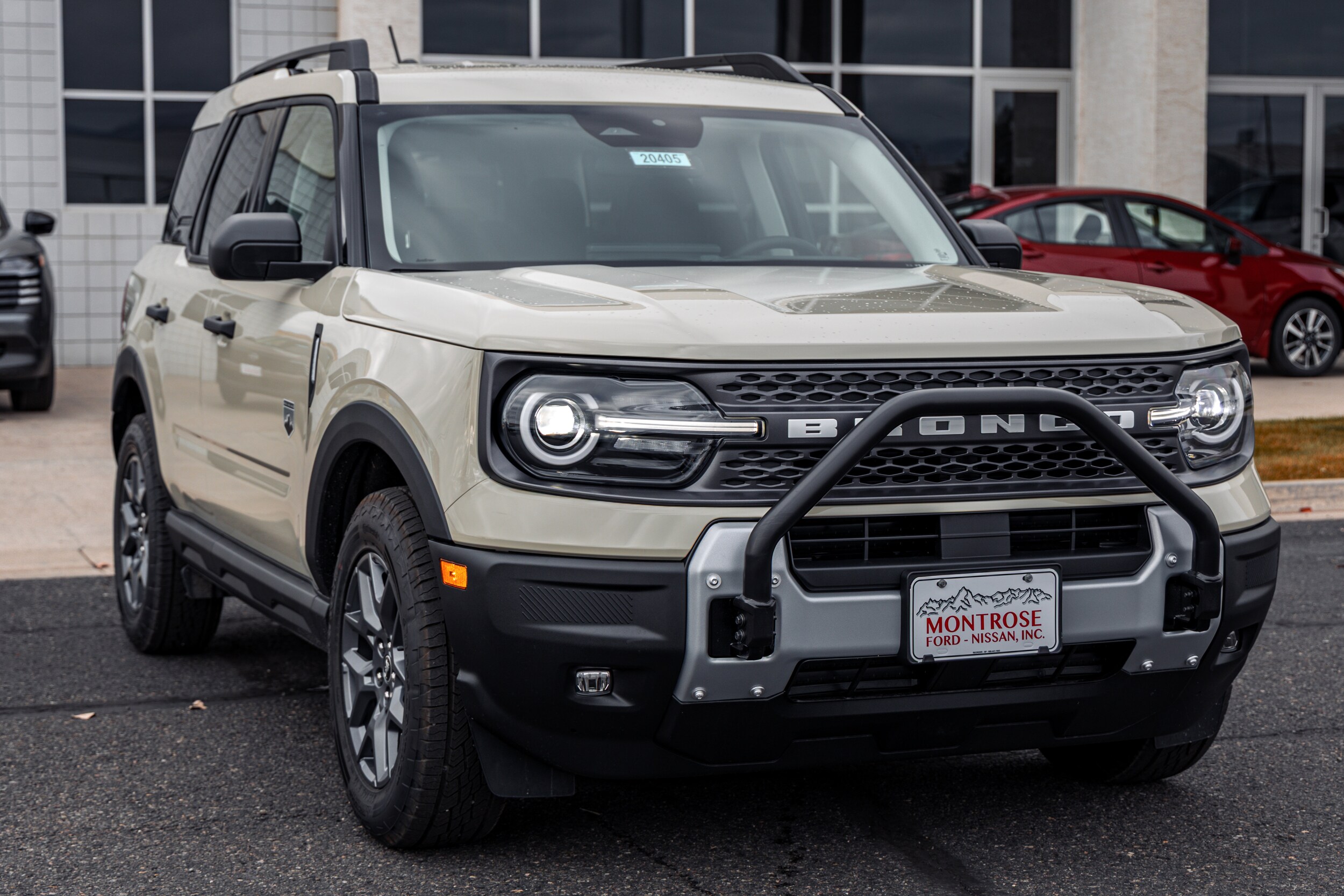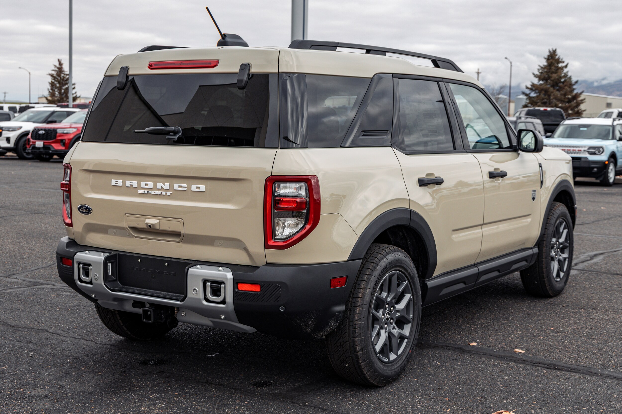 Desert Sand 2025 Ford Bronco Sport Big Bend 4WD 8-Speed Automatic 1.5L EcoBoost. Price includes $2,750 Retail Customer Cash. Exp. 02/02/2026. The interior of the 2025 has been updated with a new 13 inch touchscreen with Android Auto and Apple CarPlay. The lines of the dash flow elegantly from the new infotainment screen to the new all digital 12 inch gauge cluster. Toggling through the different modes on the gauge cluster is very intuitive, and all the displays are laid out very cleanly. This vehicle has tons of storage options all throughout. The cargo area is massive for a crossover SUV. With off road package you get a cargo management system and a very nice rubber mat. On the liftgate there is a pair of very bright LED lights turned on with a switch in the cargo area. This feature packed vehicle has tons awesome gadgets and hidden little homages.