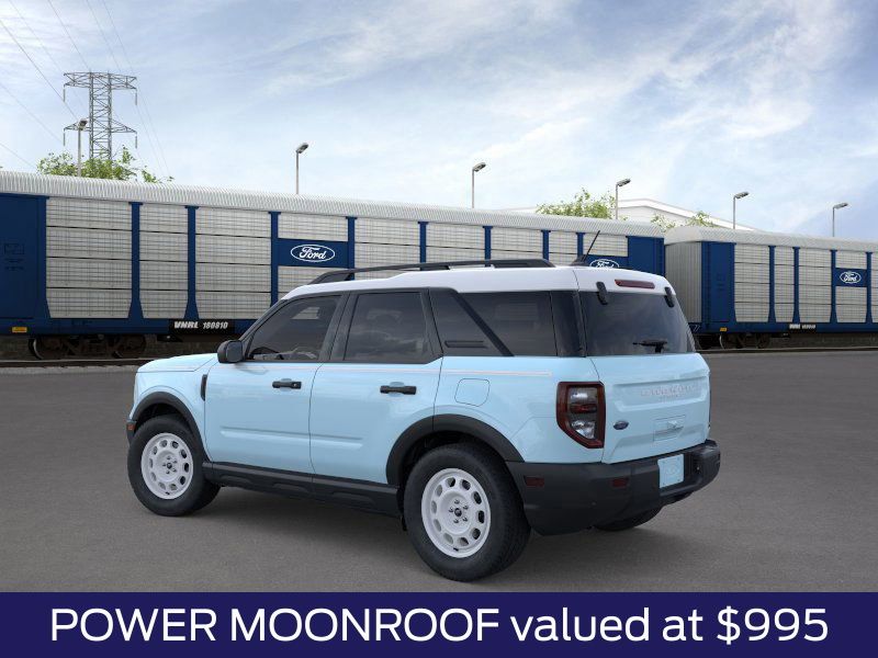 Robins Egg Blue 2025 Ford Bronco Sport Heritage 4WD 8-Speed Automatic 1.5L EcoBoost. Recent Arrival! 25/30 City/Highway MPG. Price includes: $1000 - Retail Bonus Cash. Exp. 01/05/2026 $500 - Bonus Cash. Exp. 12/17/2025 $500 - Bonus Customer Cash. Exp. 01/05/2026.