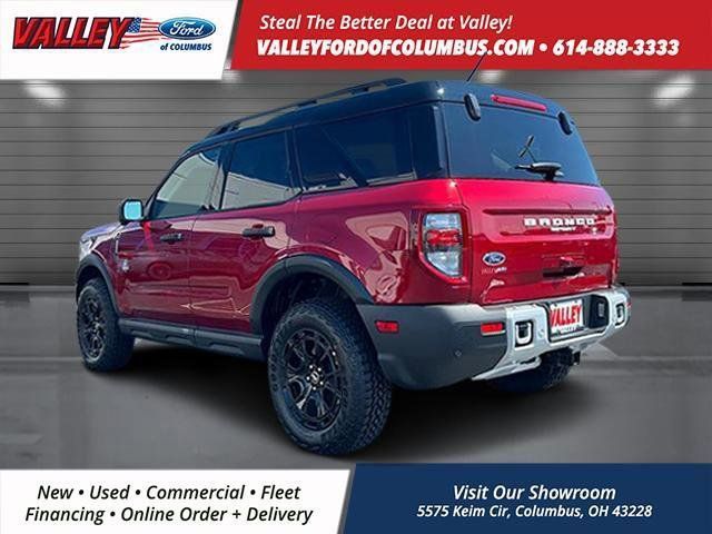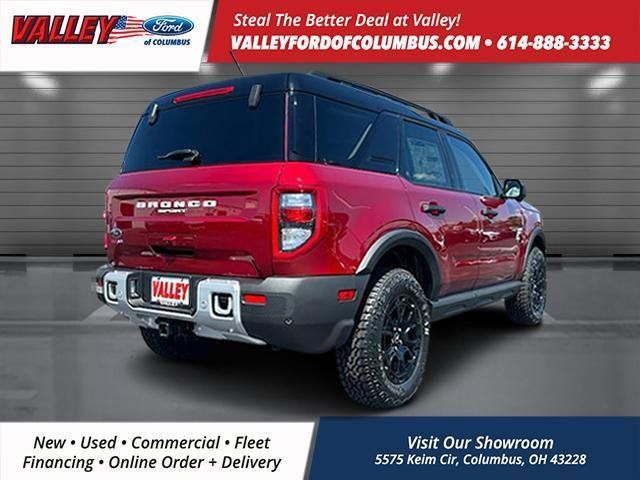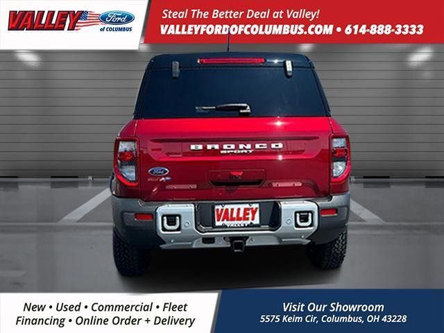 This Ford Bronco Sport has many features and is well equipped, Apple CarPlay and/or Android Auto, Bluetooth Hands-Free, Remote Start, Keyless Access with Push Button Start, Android Auto, 110V/400W AC Power Outlet, 2nd Row Carpeted Seatback, Auxiliary Switches & Wiring, B&O Sound System by Bang & Olufsen, Brush Guard, Class II Trailer Tow Pack w/Trailer Sway Control, Connected Navigation, Equipment Group 300A, Fender Tie Downs, Front & Rear Black Bumpers, HD Radio, High Clearance Fender Flares, HOSS 2.0 Off-Road Suspension, Interior Grab Handle, Outer Banks Tech Package+, Power Moonroof, Recovery Hooks, Sasquatch Outer Banks Package, Trail Control for Off-Road, Wheels: 17 Ebony Black-Painted Aluminum. 2025 Ford Bronco Sport Ruby Red Metallic Tinted Clearcoat Outer Banks 4WD 1.5L EcoBoost 8-Speed Automatic 25/30 City/Highway MPG Our mission is to provide the ultimate shopping experience to every customer. Visit our dealership near Grove City, OH, today and see why we're the premier destination for new and used vehicles, parts, and services. Thank you for taking the time to look at this good-looking 2025 Ford Bronco Sport. Here at Valley Ford of Columbus we use live market pricing. Our price is pulled live today using Cox vAuto Market Scan. Whether you are looking for a Great Deal, a Great Price, or a Great Value, Valley Ford of Columbus has you covered. Also get a complimentary CarFax available today. Join us for the best experience you will ever have. If we do not have what you are looking for, just let us know and we will find it. We have access to any make/model and offer Certified Pre-Owned vehicles too. We can also locate vehicles with just about any option to include Sunroof, Moonroof, Navigation System, Heated Steering Wheel, HomeLink, LED Headlights, DVD Player, Rear Seat Entertainment, Backup Camera, Brake Assist, Automatic Emergency Braking, Blind Spot Monitoring, Cross Traffic Alert, Rear Cross Traffic Alert, Lane Departure Warning, Night Vision, Head-up Display, Automatic Parking, Cruise Control, Adaptive Cruise Control, Rain Sensing Wipers, Remote Engine Start, Memory Seat, Leather Seats, Heated Seats, Cooled Seats, Third (3rd) Row Seats, Steering Wheel Controls, Multi-zone Climate Control, Keyless Entry, Allow Wheels, Premium Wheels, Apple CarPlay, Android Auto, WiFi Hotspot, Premium Audio Sound System, Bluetooth Audio, Hands-Free Audio, Portable Audio Connection, USB Port, Satellite Radio, Trailer Tow, Tow Hitch.