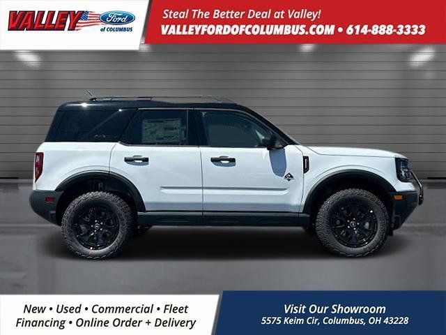 This Ford Bronco Sport has many features and is well equipped, Apple CarPlay and/or Android Auto, Bluetooth Hands-Free, Remote Start, Keyless Access with Push Button Start, Android Auto, 110V/400W AC Power Outlet, 2nd Row Carpeted Seatback, Auxiliary Switches & Wiring, B&O Sound System by Bang & Olufsen, Brush Guard, Class II Trailer Tow Pack w/Trailer Sway Control, Connected Navigation, Equipment Group 300A, Fender Tie Downs, Front & Rear Black Bumpers, HD Radio, High Clearance Fender Flares, HOSS 2.0 Off-Road Suspension, Interior Grab Handle, Outer Banks Tech Package+, Recovery Hooks, Sasquatch Outer Banks Package, Trail Control for Off-Road, Wheels: 17" Ebony Black-Painted Aluminum. 2025 Ford Bronco Sport Oxford White Outer Banks 4WD 1.5L EcoBoost 8-Speed Automatic. Our mission is to provide the ultimate shopping experience to every customer. Visit our dealership near Grove City, OH, today and see why we're the premier destination for new and used vehicles, parts, and services. Thank you for taking the time to look at this superb 2025 Ford Bronco Sport. Here at Valley Ford of Columbus we use live market pricing. Our price is pulled live today using Cox vAuto Market Scan. Whether you are looking for a Great Deal, a Great Price, or a Great Value, Valley Ford of Columbus has you covered. Also get a complimentary CarFax available today. Join us for the best experience you will ever have. If we do not have what you are looking for, just let us know and we will find it. We have access to any make/model and offer Certified Pre-Owned vehicles too. We can also locate vehicles with just about any option to include Sunroof, Moonroof, Navigation System, Heated Steering Wheel, HomeLink, LED Headlights, DVD Player, Rear Seat Entertainment, Backup Camera, Brake Assist, Automatic Emergency Braking, Blind Spot Monitoring, Cross Traffic Alert, Rear Cross Traffic Alert, Lane Departure Warning, Night Vision, Head-up Display, Automatic Parking, Cruise Control, Adaptive Cruise Control, Rain Sensing Wipers, Remote Engine Start, Memory Seat, Leather Seats, Heated Seats, Cooled Seats, Third (3rd) Row Seats, Steering Wheel Controls, Multi-zone Climate Control, Keyless Entry, Allow Wheels, Premium Wheels, Apple CarPlay, Android Auto, WiFi Hotspot, Premium Audio Sound System, Bluetooth Audio, Hands-Free Audio, Portable Audio Connection, USB Port, Satellite Radio, Trailer Tow, Tow Hitch.