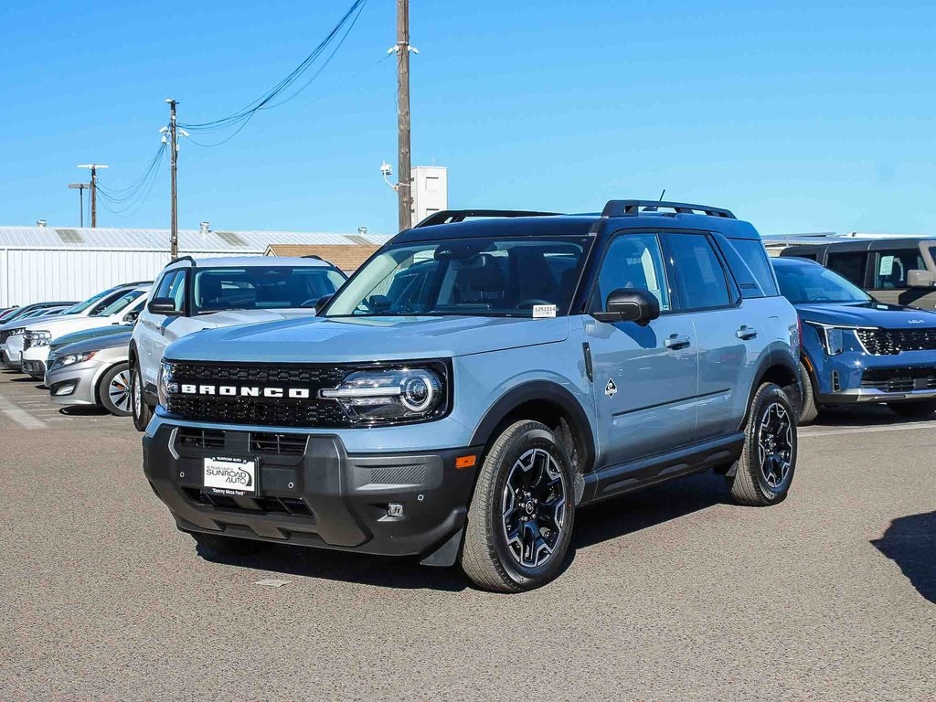 Azure Gray Metallic 2025 Ford Bronco Sport Outer Banks 4WD 8-Speed Automatic 1.5L EcoBoost. 25/30 City/Highway MPG. Price includes $1000 Bonus Customer Cash and $2000 Retail Customer Cash.