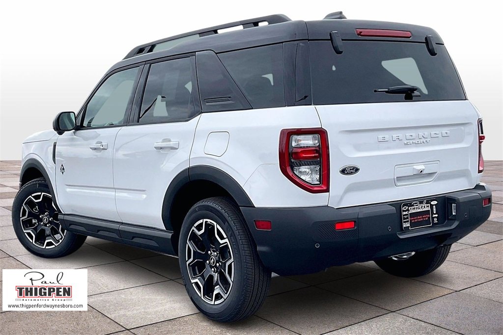 Oxford White 2025 Ford Bronco Sport Outer Banks 4WD 8-Speed Automatic 1.5L EcoBoost 360-Degree Camera w/Trail & Split View, 4-Wheel Disc Brakes, 6 Speakers, ABS brakes, Air Conditioning, Alloy wheels, AM/FM radio: SiriusXM, AM/FM Stereo, Auto High-beam Headlights, Auto-dimming Rear-View mirror, Automatic temperature control, B&O Sound System by Bang & Olufsen, Brake assist, Compass, Connected Navigation, Delay-off headlights, Driver door bin, Driver vanity mirror, Dual front impact airbags, Dual front side impact airbags, Electronic Stability Control, Emergency communication system: SYNC 4 911 Assist, Equipment Group 300A, Four wheel independent suspension, Front anti-roll bar, Front Bucket Seats, Front Center Armrest, Front Driver/Passenger Seat Back Map Pockets, Front dual zone A/C, Front fog lights, Front License Plate Bracket, Front Parking Sensors, Front reading lights, Fully automatic headlights, Garage door transmitter, HD Radio, Heated door mirrors, Heated front seats, Heated steering wheel, Illuminated entry, Knee airbag, Low tire pressure warning, Memory seat, Occupant sensing airbag, Outer Banks Tech Package+, Outside temperature display, Overhead airbag, Overhead console, Panic alarm, Passenger door bin, Passenger vanity mirror, Power door mirrors, Power driver seat, Power passenger seat, Power steering, Power windows, Premium Trimmed Front Bucket Seats w/Ebony/Roast, Premium Trimmed Front Bucket Seats w/Platinum Blue, Radio data system, Rain sensing wipers, Rear anti-roll bar, Rear Parking Sensors, Rear reading lights, Rear seat center armrest, Rear window defroster, Rear window wiper, Remote keyless entry, Reverse Brake Assist, Security system, SiriusXM, Speed control, Speed-sensing steering, Speed-Sensitive Wipers, Split folding rear seat, Steering wheel mounted audio controls, SYNC 4 w/Enhanced Voice Recognition, Tachometer, Telescoping steering wheel, Tilt steering wheel, Traction control, Trip computer, Variably intermittent wipers, Wheels: 18" Ebony Black-Painted Aluminum.