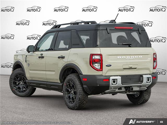 Our impressive 2025 Ford Bronco Sport Outer Banks 4X4 is equipped for epic adventures with the Sasquatch Pack in Desert Sand! Motivated by a TurboCharged 1.5 Litre EcoBoost 3 Cylinder supplying 181hp to an 8 Speed Automatic transmission for real-world capability. This Four Wheel Drive SUV also adds our Sasquatch Pack for off-road action with a HOSS 2.0 suspension and Trail Control, and it returns approximately 8.4L/100km on the highway. Rugged and distinctive, our Bronco Sport looks good on the road or off with a stylish Shadow Black roof, LED lighting, and package upgrades like steel bumpers, underbody skid plates, recovery hooks, a brush guard, a power sunroof, and black alloy wheels. Inside, our Outer Banks cabin greets you with heated premium-trimmed power front seats, a heated-wrapped steering wheel, and dual-zone automatic climate control help keep you comfortable even when the going gets tough outside. Additional amenities include keyless access/ignition, remote start, a 110V/150W outlet, and a SYNC Power infotainment system. It bundles a 13.2-inch touchscreen, a 12.3-inch driver display is not provided. Your drive, simplified by Autoiq.