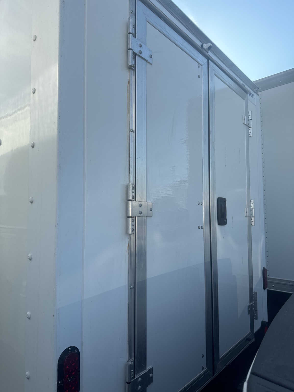 2025 Ford E-350SD Oxford White 7.3L V8 RWD 12' Cargoport with rear barn doors. Contact: Nick Constantine Commercial Sales Manager 410-365-3904 cell.