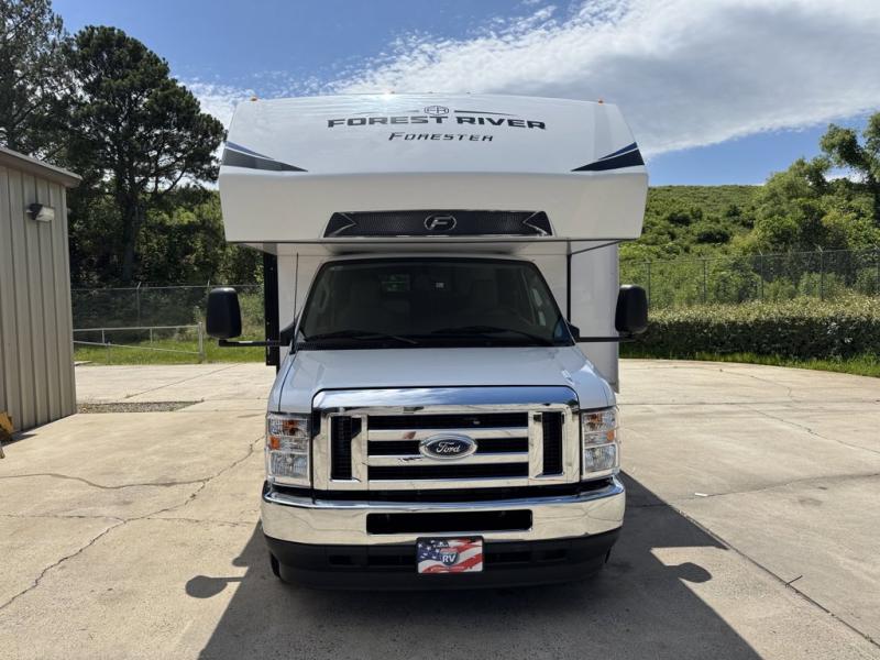 Forest River Forester LE Class C gas motorhome 3251DSLE Ford highlights: Flip-Down Bunk. Two Slides. Bunk Over Cab. Booth Dinette. Convection Microwave. Roto-Cast Storage. This family friendly coach allows the kids to have their own space either on the flip-down bunk above the kid's sofa sleeper that is across from the full bathroom or on the cab-over bunk. You will have the rear bedroom all to yourselves with a queen bed and a large wardrobe for your things. Everyone can visit while relaxing on the sofa and booth dinette while watching the LED TV or even while sitting under the 11' power awning outside when you add your camping chairs. The kitchen offers a corner area to make meals with a convection microwave and recessed three-burner range, plus a round sink and flip-up counter extension, and you can store cold items in the 10.7 cu. ft. 12V refrigerator near the entry, and the soft touch self-closing drawer guides and cordless 12V charging plate are features you will love. With any Forester LE Class C gas motorhome by Forest River, you will enjoy premier features such as the backup camera/side view cameras with a 3-way monitor, the Winegard Air 360+ digital antenna, and the 15,000 BTU ceiling ducted, ultra quiet roof air with a heat pump when traveling during the warmer months. The exterior includes aluminum framed laminated sidewalls, gel coat exterior fiberglass, a one-piece fiberglass front cap, and slide room toppers. Some of the interior top features are the Maxx Air multi-speed power fan with a cover in the kitchen, the high pressure oxygen infused shower head, and the blackout roller shades for a good night's sleep. Make your selection today!
