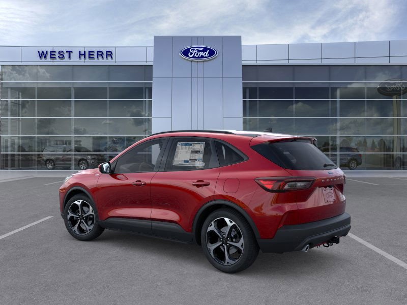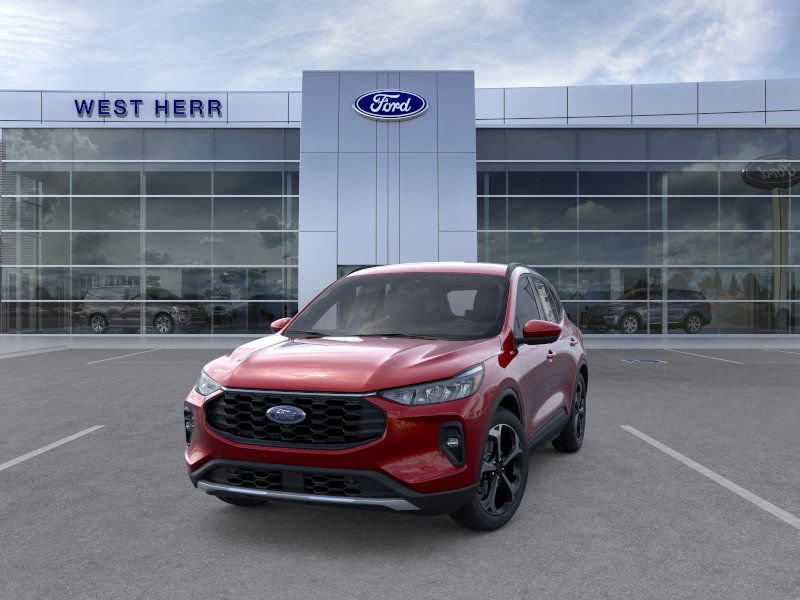 The 2025 Ford Escape ST-Line Select in Rapid Red Metallic Tinted Clearcoat features a 2.5L iVCT Atkinson Cycle I-4 Hybrid engine and all-wheel drive. This compact SUV offers a comfortable Ebony interior, advanced technology, and a suite of safety features. Enjoy a smooth and efficient ride with impressive fuel efficiency for its class.