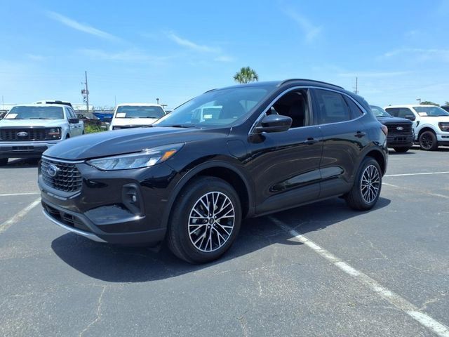 $7,273 off MSRP! Priced below KBB Fair Purchase Price! 2025 Ford Escape Plug-In Hybrid in Black Metallic and Ebony w/Heated Vinyl/Cloth Front Sport Contour Bucket Seats. 2.5L iVCT, Brake assist, Electronic Stability Control, Equipment Group 700A, Four wheel independent suspension, Fully automatic headlights, Low tire pressure warning, Panic alarm, Passenger door bin, Rear anti-roll bar, Speed control, Speed-sensing steering, Steering wheel mounted audio controls, SYNC 4 w/Enhanced Voice Recognition, Traction control, Variably intermittent wipers, Wheels: 18″ Machined-Face Magnetic Aluminum. This vehicle is only available at Sunstate Ford, 3535 West Colonial Dr Orlando FL 32808. Sunstateford.com (407) 581-0383. Price includes: $5500 – Bonus Customer Cash. Exp. 09/30/2025.