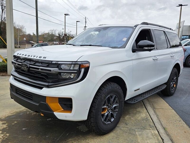 2025 Ford Expedition Tremor 4WD with V6 3.5L gasoline engine — now available in Dublin, GA. This rugged, capable SUV combines powerful performance with advanced technology and off-road readiness. The turbocharged 3.5L V6 delivers confident towing and strong acceleration, while the Tremor-tuned suspension and 4WD system provide enhanced traction and control on rough trails or wet roads. Designed for drivers who need serious capability without sacrificing comfort, this Ford Expedition features premium interior materials, flexible seating for passengers and cargo, and thoughtful storage solutions for weekend gear or family road trips. Stay connected and entertained with Hands Free Bluetooth, Android Auto, Apple CarPlay, and built-in Navigation—perfect for long drives across Georgia or daily commutes. Remote Start adds convenience on chilly mornings or hot afternoons, so your cabin is ready when you are. Safety and assistance technologies are integrated to help keep you confident behind the wheel. Located in Dublin, GA, this 2025 Ford Expedition Tremor is competitively priced and listed as the best price in the area—offering exceptional value for a high-performance SUV. Whether you need a dependable tow vehicle, a family hauler, or an off-road adventurer, this Ford Expedition Tremor delivers. Contact us today to schedule a test drive and experience the capability and comfort firsthand.