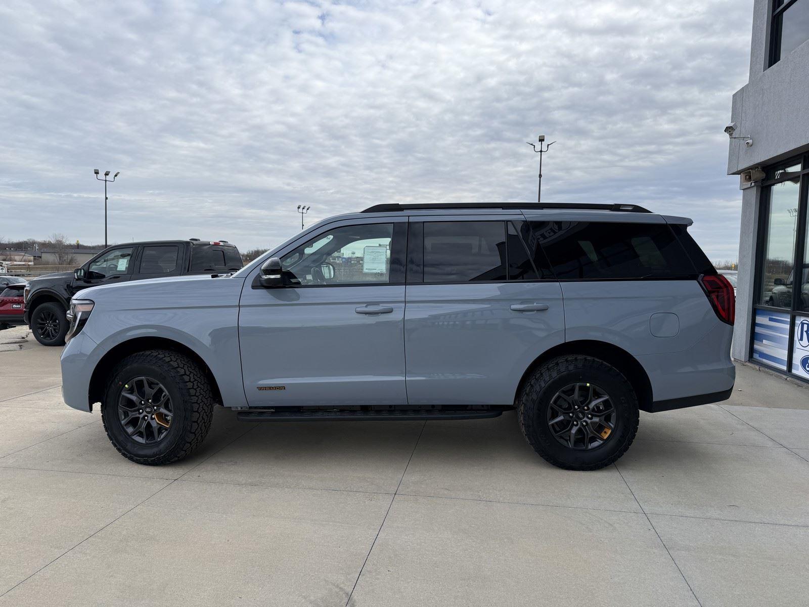 NEW 2025 Ford Expedition Tremor 4x4. Available now at Reed Ford. Call or text 816-380-3251. This brand-new 2025 Ford Expedition Tremor 4x4 delivers full-size SUV comfort with real off-road capability. This unit has never been used as a demo or service loaner and includes full factory warranty coverage. Performance and capability highlights include the 3.5L EcoBoost V6, Tremor off-road suspension, skid plates, Trail Turn Assist, Terrain Management System with selectable drive modes, two-speed transfer case, and strong towing capability. Interior and technology features include a 24-inch panoramic display with a 13.2-inch center touchscreen, SYNC 4 with wireless Apple CarPlay and Android Auto, Ford Co-Pilot360 Assist 2.0, heated front and second-row seats, heated steering wheel, tri-zone automatic climate control, ambient lighting, power-adjustable pedals, and push-button start. Safety and driver-assist features include adaptive cruise control, blind spot information system, lane-keeping assist, pre-collision assist with automatic emergency braking, rear view camera, multiple airbags, and tire pressure monitoring system.