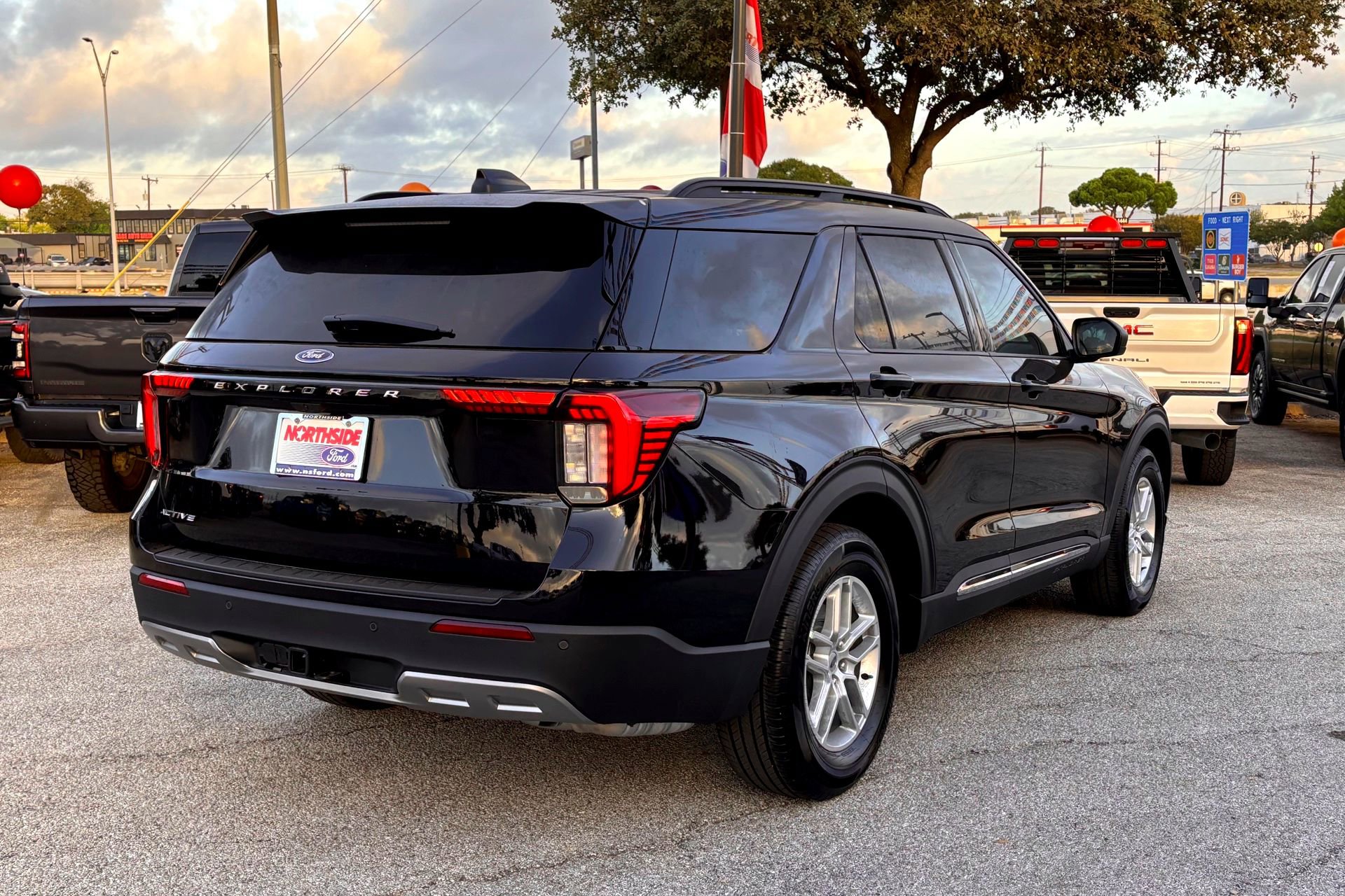 2025 Ford Explorer RWD Active Agate Black Metallic 2.3L EcoBoost I-4 10-Speed Automatic. Active Comfort Package, Air Conditioning, AM/FM Stereo, Automatic temperature control, Equipment Group 200A Standard Package, Front dual zone A/C, Front Fascia, Heated ActiveX Seating Material Captain's Chairs, Heated Steering Wheel, Power driver seat, Power Liftgate, Power steering, Power windows, Rear air conditioning, Rear window defroster, Remote keyless entry, Remote Start System, Second Row HVAC Controls, Steering wheel mounted audio controls, Universal Garage Door Opener (UGDO), Wheels: 18 Sparkle Silver-Painted Aluminum. This vehicle is located at Northside Ford. We're centrally located in the heart of San Antonio off Hwy 281 and Nakoma, just north of the airport.