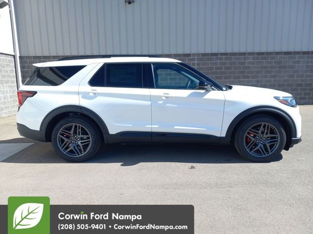 Level up to our 2025 Ford Explorer ST 4WD with the Sun & Sound Package that looks aggressively athletic in Star White Metallic Tri-Coat! Powered by a Twin-TurboCharged 3.0 Liter EcoBoost V6 serving up 400hp to a paddle-shifted 10 Speed Automatic transmission for premium performance. A sport-tuned suspension and Terrain Management help your family take on tricky trails and twisty roads, and this Four Wheel Drive SUV sees nearly 24mpg on the highway. Showing a confident style all its own, our Explorer boasts our package's panoramic vista roof, LED lighting, quad exhaust outlets, a power liftgate, 21-inch wheels, roof rails, and black accents. Be ready to turn heads in this bold SUV! Our ST cabin offers ample space for gear and good times, crafted for ultimate comfort. Check out the heated/ventilated/massaging multicontour power front seats, heated seats, power-fold third row, heated leather sport steering wheel, and tri-zone automatic temperature control. Take digital control of your days with a 13.2-inch touchscreen and a 12.3-inch driver display, Apple CarPlay/Android Auto, WiFi compatibility, Bluetooth, voice control, wireless charging, and amazing B&O audio. Staying safer is easier with smart Ford features like blind-spot monitoring, front/rear automatic braking, a 360-degree camera system, lane-keeping assistance, and more. Our Explorer ST is a capable towing machine that can help your family pull through the tough spots! Save this Page and Call for Availability. We Know You Will Enjoy Your Test Drive Towards Ownership! Corwin Ford Nampa! Friendly service and aggressive pricing is why we are your new and pre-owned vehicle dealer serving, Nampa, Boise, Meridian, Caldwell, Kuna, Eagle, Emmett, Idaho City, Wilder, New Plymouth, Star, Middleton, Weiser, Payette, Horseshoe Bend, Mountain Home, Idaho, and surrounding states.