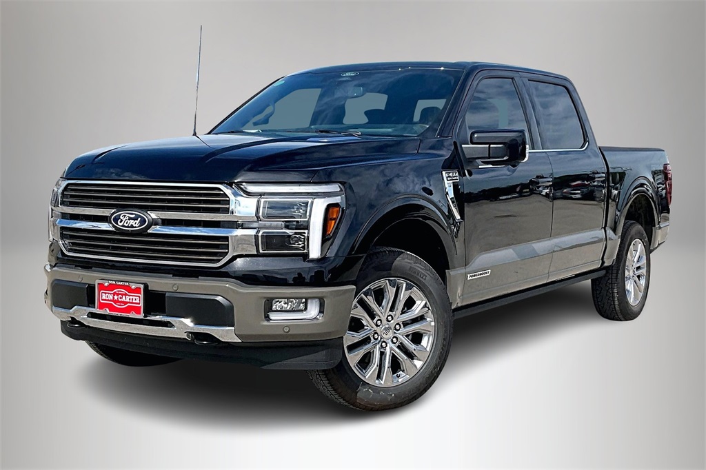 10-Speed Automatic 3.5L PowerBoost Full-Hybrid V6 3.5L PowerBoost Full-Hybrid V6, 4WD. Here at Ron Carter you get the deal you see. We do not advertise it if you don't qualify for it. Honest, Straight Forward deals you can trust. Ron Carter Ford is proud to offer this stout 2025 Ford F-150 King Ranch. Well equipped with Equipment Group 601A High, FX4 Off-Road Package (4x4 FX4 Off-Road Bodyside Decal, Hill Descent Control, Monotube Rear Shocks, Off-Road Tuned Front Shock Absorbers, and Rock Crawl Mode), 3.5L PowerBoost Full-Hybrid V6, 4WD, 14 Speakers, 4-Wheel Disc Brakes, ABS brakes, Adjustable pedals, Air Conditioning, Alloy wheels, AM/FM radio: SiriusXM with 360L, Auto High-beam Headlights, Auto tilt-away steering wheel, Auto-dimming door mirrors, Auto-dimming Rear-View mirror, Automatic temperature control, Brake assist, Chrome wheels, Compass, Delay-off headlights, Driver door bin, Driver vanity mirror, Dual front impact airbags, Dual front side impact airbags, Electronic Stability Control, Emergency communication system: SYNC 4 911 Assist, Front anti-roll bar, Front Bucket Seats, Front Center Armrest, Front dual zone A/C, Front fog lights, Front License Plate Bracket, Front reading lights, Front wheel independent suspension, Fully automatic headlights, Garage door transmitter, Genuine wood dashboard insert, Heads-Up Display, Heated door mirrors, Heated front seats, Heated rear seats, Heated steering wheel, Illuminated entry, King Ranch Multicontour Leather Bucket Seats, Leather steering wheel, Low tire pressure warning, Memory seat, Navigation system: Connected Navigation, Occupant sensing airbag, Outside temperature display, Overhead airbag, Overhead console, Panic alarm, Passenger door bin, Passenger vanity mirror, Pedal memory, Power door mirrors, Power driver seat, Power moonroof, Power passenger seat, Power steering, Power windows, Radio data system, Radio: B&O Unleashed Sound System by Bang & Olufsen, Rain sensing wipers, Rear reading lights, Rear seat center armrest, Rear step bumper, Rear window defroster, Remote keyless entry, Security system, Speed control, Split folding rear seat, Steering wheel memory, Steering wheel mounted audio controls, SYNC 4 w/Enhanced Voice Recognition, Tachometer, Telescoping steering wheel, Tilt steering wheel, Traction control, Trip computer, Turn signal indicator mirrors, Variably intermittent wipers.