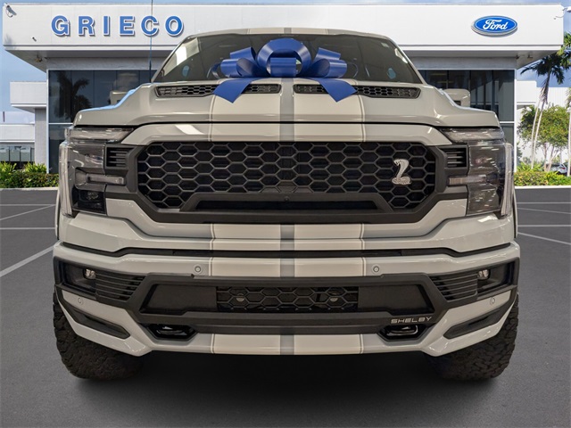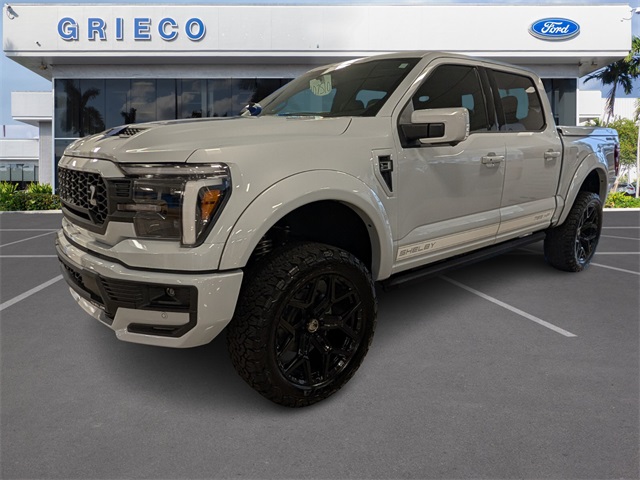Offered at Grieco Ford of Fort Lauderdale. White Metallic 2025 Ford F-150 Lariat 785hp supercharger system (optional) Supercharger (Ford Racing Blue) Carbon fiber air intake tube Open air performance intake w/ high flow filter Performance aluminum heat exchanger High performance fuel injectors Shelby by Borla CAT-back exhaust w/ black tips Shelby by FOX suspension system FOX 2.5 factory race series shock system Internal bypass shock technology Adjustable dual speed controls Shelby by BDS 3 lift system 22 inch Shelby alloy wheels 35 inch premium all terrain tires Performance rear traction bars 3 year / 36,000 mile Limited Warranty (Original Owner Only) *Optional supercharger for POST-TITLE SALES ONLY* *HP ratings based on use of 93-octane fuel*, Carbon fiber aesthetic interior trim kit Billet racing pedals Embroidered floor mats Shelby spec interior upgrade Serialized console plaque Serialized engine plaque Deep tinted windows (per state regulations), Shelby dual intake hood Hood vents and extractors Body color fender flares Power running boards w/ rock guard trim & entry lights Fender vents w/ badging Front bumper & fascia assembly Upper grille, w/ body matched surround & Cobra emblem Front bumper cover w/ Lower & outboard grilles Body color tonneau cover Carpet bed rug bedliner Shelby striping and badging, F-150 Shelby, Must See. All pricing and details provided are believed to be accurate, but we do not warrant or guarantee such accuracy. New vehicles offered may be eligible for manufacturer incentives which may change at any time and are subject to incentive qualification criteria and requirements, and which may be contingent upon manufacturer finance company approval. Manufacturer incentive data and vehicle features information is provided by third parties and believed to be accurate as of the time of publication. Vehicle information is based upon standard equipment and may vary from vehicle to vehicle. Please contact the dealership for complete vehicle information. Prices and payments do not include sales tax or other taxes, tag, title, registration fees, government fees and tag agency fees are not included in the quoted price. Electronic Registration Filing fee of $549, Pre-delivery Service Fee of $1295 are not included in the quoted price. While great effort is made to ensure the accuracy of the information on our website, errors do occur. Further, vehicle listings within this website may not reflect all accurate vehicle items. Accessories and colors may vary. Vehicle Photos may not match exact vehicles. Please confirm information and vehicle price and availability of incentives by calling or visiting us at the dealership.