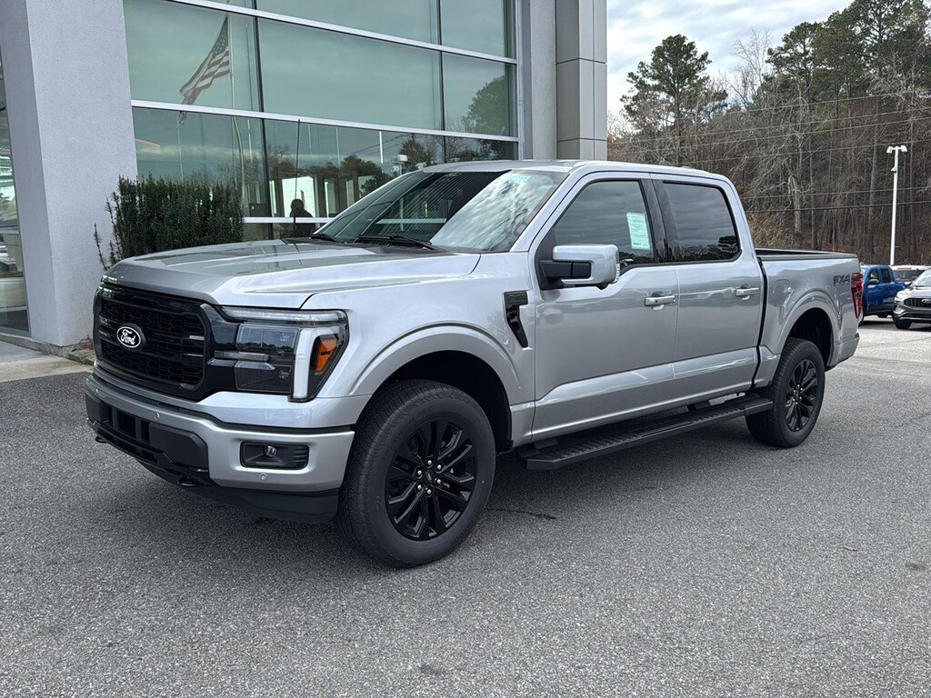 Thank you for choosing Butler Ford, this Iconic Silver 2025 Ford F-150 Lariat is a great choice! Checkout the following: Engine: 3.5L V6 EcoBoost, Iconic Silver Metallic, Black, Activex trimmed bucket seats. Spray-In Bed Liner ($625 value). 3.55 Electronic Locking Axle Ratio ($470 value). Wheel Well Liner ($180 value). FX4 Off-Road Package ($1,320 value). Includes electronic locking rear differential, tray style floor liner, hill descent control, rock crawl mode, front and rear off-road tuned shock absorbers, rear monotube shock absorbers, and skid plates for fuel tank, transfer case, and front differential. Tow/Haul Package ($1,010 value). Includes onboard scale with smart hitch, integrated trailer brake controller, electronic locking rear differential, and upgraded rear bumper. Equipment Group 502A ($7,725 value). Includes vehicle with standard equipment, 20 x 8.5 inch chrome PVD wheels with 275/60R20 all-terrain tires, 6 inch chrome angular running boards, power-sliding rear window, B&O Unleashed sound system with 14 speakers and subwoofer, heads-up display, heated rear seats, Ice Blue ambient lighting, interior work surface, wireless charging pad, 110V/400W outlet in the instrument panel and pickup bed, partitioned lockable fold-flat storage, and dual illuminating vanity mirrors. Black Appearance Package ($1,225 value). Includes 18 inch gloss black aluminum wheels, body-color front and rear bumpers, black grille, body-color door handles and mirror caps, gray box side decal, black exterior badging, black taillamp bezels, dual exhaust with black tips, and black interior appliques.