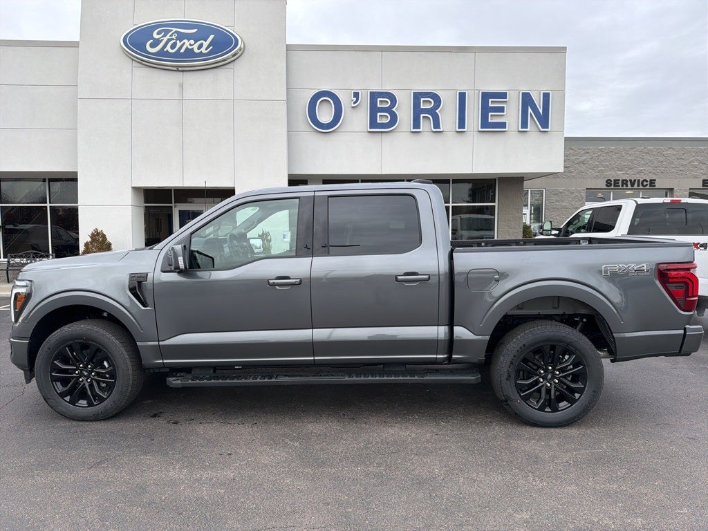 Gray 2025 Ford F-150 Lariat 4WD 10-Speed Automatic 5.0L V8 4WD, 2nd Row Heated Seats, 4x4 FX4 Off-Road Bodyside Decal, ActiveX Trimmed Bucket Seats (B), Ambient Lighting - Ice Blue Color Only, Black Exterior Badging, Black Grille, Black Taillamp Bezels, Body-Color Front & Rear Bumpers, Body-Color Skull Caps & Door Handles, Console Worksurface, Dark Interior Appliques, Electronic Locking w/3.31 Axle Ratio, Equipment Group 502A High, FX4 Off-Road Package, Gray Box Side Decal, Heads-Up Display, Hill Descent Control, Illuminated Driver & Passenger Visors, Lariat Black Appearance Package, Matte Black Tailgate F-150 Decal, Mobile Office Package, Monotube Rear Shocks, Off-Road Tuned Front Shock Absorbers, Partitioned Lockable Rear Storage, Power-Sliding Rear Window, Radio: B&O Unleashed Sound System by Bang & Olufsen, Rock Crawl Mode, Tray Style Floor Liner w/o Carpet Mats, Wheels: 20 Chrome-Like PVD, Wireless Charging. Recent Arrival! Price includes: $2000 - Retail Customer Cash. Exp. 01/05/2026