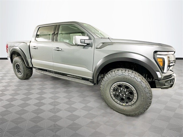 Recent Arrival! Gray 2025 Ford F-150 Raptor 4WD 3.5L V6 EcoBoost 4D SuperCrew 10-Speed Automatic 4WD, 14 Speakers, 17" Cast Aluminum Wheels, 4-Wheel Disc Brakes, ABS brakes, Adjustable pedals, Air Conditioning, Alloy wheels, AM/FM radio: SiriusXM with 360L, Auto High-beam Headlights, Auto tilt-away steering wheel, Auto-dimming door mirrors, Auto-dimming Rear-View mirror, Automatic temperature control, Brake assist, Bumpers: body-color, Carbon Fiber Interior Appliques, Compass, Delay-off headlights, Driver door bin, Driver vanity mirror, Dual front impact airbags, Dual front side impact airbags, Dual Valve Shocks, Electronic Locking w/4.10 Axle Ratio, Electronic Stability Control, Emergency communication system: SYNC 4 911 Assist, First Aid Kit w/Ford Logo, Missing, Garage door transmitter.