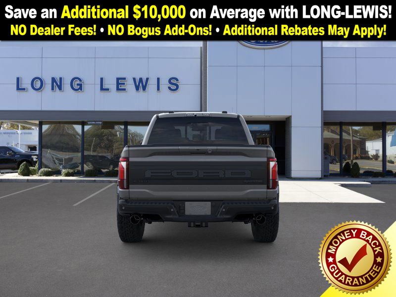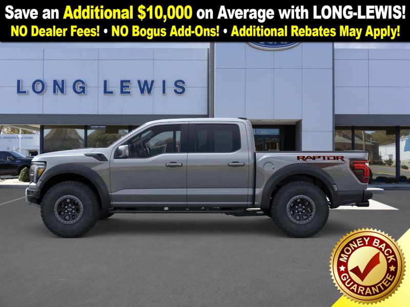 Carbonized Gray Metallic 2025 Ford F-150 Raptor NFT 4WD 10-Speed Automatic 3.5L V6 EcoBoost 4WD, 14 Speakers, 17" Cast Aluminum Wheels, 4-Wheel Disc Brakes, ABS brakes, Adjustable pedals, Air Conditioning, Alloy wheels, AM/FM radio: SiriusXM with 360L, Auto High-beam Headlights, Auto tilt-away steering wheel, Auto-dimming door mirrors, Auto-dimming Rear-View mirror, Automatic temperature control, Brake assist, Bumpers: body-color, Carbon Fiber Interior Appliques, Compass, Delay-off headlights, Driver door bin, Driver vanity mirror, Dual front impact airbags, Dual front side impact airbags, Dual Valve Shocks, Electronic Locking w/4.10 Axle Ratio, Electronic Stability Control, Emergency communication system: SYNC 4 911 Assist, Equipment Group 802A Raptor 37, Front anti-roll bar, Front Bucket Seats, Front Center Armrest, Front dual zone A/C, Front fog lights, Front License Plate Bracket, Front reading lights, Front wheel independent suspension, Fully automatic headlights, Garage door transmitter, Heads-Up Display, Heated door mirrors, Heated front seats, Heated rear seats, Heated steering wheel, Illuminated entry, Internet access capable: FordPass Connect 5G, Lane Departure Warning System, Leather steering wheel, Leather Trimmed Seats, Low tire pressure warning, Memory seat, Modular Front Bumper, Navigation system: Connected Navigation, Occupant sensing airbag, Outside temperature display, Overhead airbag, Overhead console, Panic alarm, Passenger door bin, Passenger vanity mirror, Pedal memory, Power door mirrors, Power driver seat, Power passenger seat, Power steering, Power windows, Radio data system, Radio: B&O Unleashed Sound System by Bang & Olufsen, Rain sensing wipers, Rear reading lights, Rear step bumper, Rear window defroster, RECARO Alcantara Suede Front Seats, Remote keyless entry, Security system, Speed control, Speed-sensing steering, Split folding rear seat, Steering wheel memory, Steering wheel mounted audio controls, SYNC 4 w/Enhanced Voice Recognition, Tachometer, Telescoping steering wheel, Tilt steering wheel, Traction control, Trip computer, Turn signal indicator mirrors, Twin Panel Moonroof, Variably intermittent wipers, Ventilated front seats, Wheels: Raptor 37 Unique 17" Cast Aluminum.
