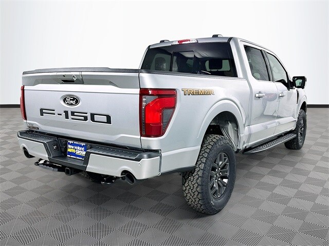 Recent Arrival! Silver Metallic 2025 Ford F-150 Tremor 4WD 3.5L V6 EcoBoost 4D SuperCrew 10-Speed Automatic 4WD, 4 Pickup Box Tie-Down Plates, 4-Wheel Disc Brakes, 8 Speakers, ABS brakes, Adjustable pedals, Air Conditioning, Alloy wheels, AM/FM radio: SiriusXM with 360L, Auto High-beam Headlights, Auto-dimming door mirrors, Auto-dimming Rear-View mirror, Automatic temperature control, Bed Utility Package, Black Tailgate Decal, Brake assist, Bumpers: body-color, Compass, Delay-off headlights, Driver door bin, Driver vanity mirror, Dual front impact airbags, Dual front side impact airbags, Electronic Locking w/3.73 Axle Ratio, Electronic Stability Control, Emergency communication system: SYNC 4 911 Assist, Equipment Group 401A Standard, Front anti-roll bar, Front Bucket Seats, Front Center Armrest, Front dual zone A/C, Front fog lights, Front License Plate Bracket, Front reading lights, Front wheel independent suspension, Fully automatic headlights, GVWR: 7,100 lbs Payload Package, Heated door mirrors, Heated front seats, Illuminated entry, Integrated Trailer Brake Controller, LED Box Lighting, Low tire pressure warning, Navigation system: Connected Navigation, Occupant sensing airbag, Outside temperature display, Overhead airbag, Overhead console, Panic alarm, Passenger door bin, Passenger vanity mirror, Power door mirrors, Power driver seat, Power passenger seat, Power steering, Power Sport Sport Cloth 40/60/40/40 Power Front Seat. At New Holland we are committed to exceeding the expectations of our customers and will do everything possible to ensure that you are completely satisfied!