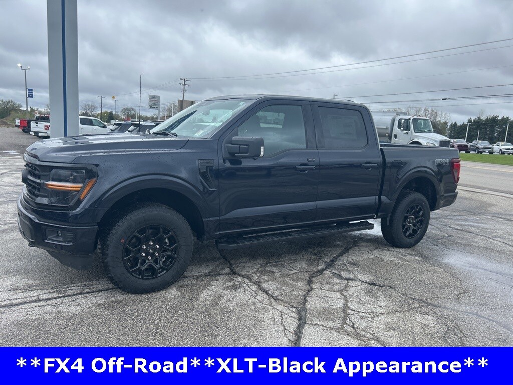 2025 Ford F-150 XLT 4D SuperCrew, 2.7L V6 EcoBoost, 4WD, Apple CarPlay & Android Auto, Blind Spot Monitoring System, Heated Seats, Lane Departure Warning, Oil Changes for Life, Remote Start, Trailer Tow Package. Black Unique Sport Cloth 40 Front Seats, 360 Degree Camera, Adaptive Cruise Control w/Stop & Go, Auto-Dimming Rear-View Mirror, Bed Utility Package, Black Exterior Badging, Black Grille, Black Painted Grille w/Chrome Center Bar, Body-Color Front & Rear Bumpers, Chrome Door & Tailgate Handles, Chrome Single-Tip Exhaust, Cloth 40/Console/40 Front Seats, Connected Navigation, Dark Interior Appliques, Driver State Detection, Dual-Zone Electronic Automatic Temperature Control, Equipment Group 302A Mid, Evasive Steering Assist, Floor Shifter, Ford Co-Pilot360 Assist 2.0, Front Parking Sensors, FX4 Off-Road Package, Gray Box Side Decal, GVWR: 6,650 lbs Payload Package, Heated Front Seats, Hill Descent Control, Integrated Trailer Brake Controller, Intelligent Access w/Push Button Start, LED Box Lighting, Monotube Rear Shocks, Off-Road Tuned Front Shock Absorbers, Power Glass Heated Sideview Mirrors, Power-Sliding Rear Window, Remote Start System w/Remote Tailgate Release, Rock Crawl Mode, SYNC 4 w/Enhanced Voice Recognition, Tailgate Step w/Tailgate Work Surface, Towing Technology. Tray Style Floor Liner w/o Carpet Mats. Unique Sport Cloth 40/Console/40 Front-Seats. Wheels: 18" Gloss Black.