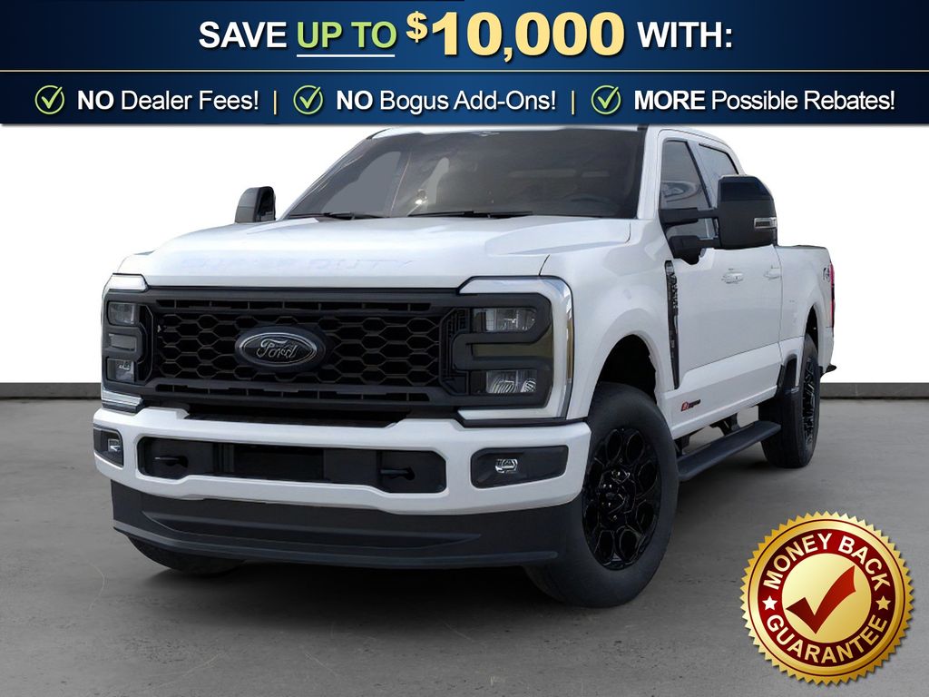 Dealer Discount of $7,710 off MSRP Star White Metallic Tri-Coat 2025 Ford F-250SD Lariat NFT 4WD 10-Speed Automatic 6.7L High Output Power Stroke V8 Diesel 4WD, 4-Way Adjustable Headrests, 4-Wheel Disc Brakes, 410 Amp Dual Alternators, 6" Ebony Black Angular Running Boards, 8 Speakers, ABS brakes, Adaptive Cruise Control with Stop-and-Go, Adjustable pedals, Air Conditioning, Alloy wheels, AM/FM radio: SiriusXM with 360L, Auto High-beam Headlights, Auto-dimming Rear-View mirror, Automatic High Beam, Automatic temperature control, Black Appearance Package, Black Painted Front Grille Surround, BLIS with Cross-Traffic Alert, Body Color Front and Rear Bumpers, Brake assist, Bumpers: chrome, Compass, Delay-off headlights, Driver door bin, Driver vanity mirror, Dual AGM 68 AH Battery, Dual front impact airbags, Dual front side impact airbags, Ebony Black Painted Mirror Caps, Electronic Stability Control, Emergency communication system: SYNC 4 911 Assist, Engine Block Heater, Flow-Through Console, Front ActiveX Trimmed 40/Console/40 Seats, Front and Rear Parking Sensors, Front anti-roll bar, Front Bucket Seats, Front Center Armrest, Front dual zone A/C, Front fog lights, Front reading lights, Fully automatic headlights, FX4 Off-Road Package, Garage door transmitter, GVWR: F-250 >10K Package, Head-Up Display, Heated door mirrors, Heated front seats, Heated rear seats, Heated steering wheel, High Capacity 11.6" Axle Upgrade Package, Hill Descent Control, Illuminated entry, Internet access capable: FordPass Connect 5G, Lane-Keeping System, Lariat Ultimate Package, Low tire pressure warning, Memory seat, Navigation System, Off-Road Specifically Tuned Shock Absorbers, Order Code 608A, Outside temperature display, Overhead airbag, Overhead console, Panic alarm, Passenger door bin, Passenger vanity mirror, Pedal memory, Post-Collision Braking, Power door mirrors, Power driver seat, Power passenger seat, Power steering, Power windows, Power-Deployable Running Boards, Power-Sliding Rear-Window with Defrost, Pre-Collision Assist, Privacy Glass, Pro Trailer Backup Assist, Pro Trailer Hitch Assist, Radio: B&O Sound System by Bang and Olufsen, Radio: B&O Unleashed Sound System by Bang & Olufsen, Rain sensing wipers, Rapid-Heat Supplemental Cab Heater, Rear Parking Sensors, Rear reading lights, Rear seat center armrest, Rear step bumper, Rear window defroster, Remote keyless entry, Security system, SiriusXM Radio with 360L, Speed control, Split folding rear seat, Steering wheel mounted audio controls, SYNC 4 with Enhanced Voice Recognition, Tachometer, Tailgate Step and Handle, Telescoping steering wheel, Tilt steering wheel, Traction control, Trip computer, Turn signal indicator mirrors,