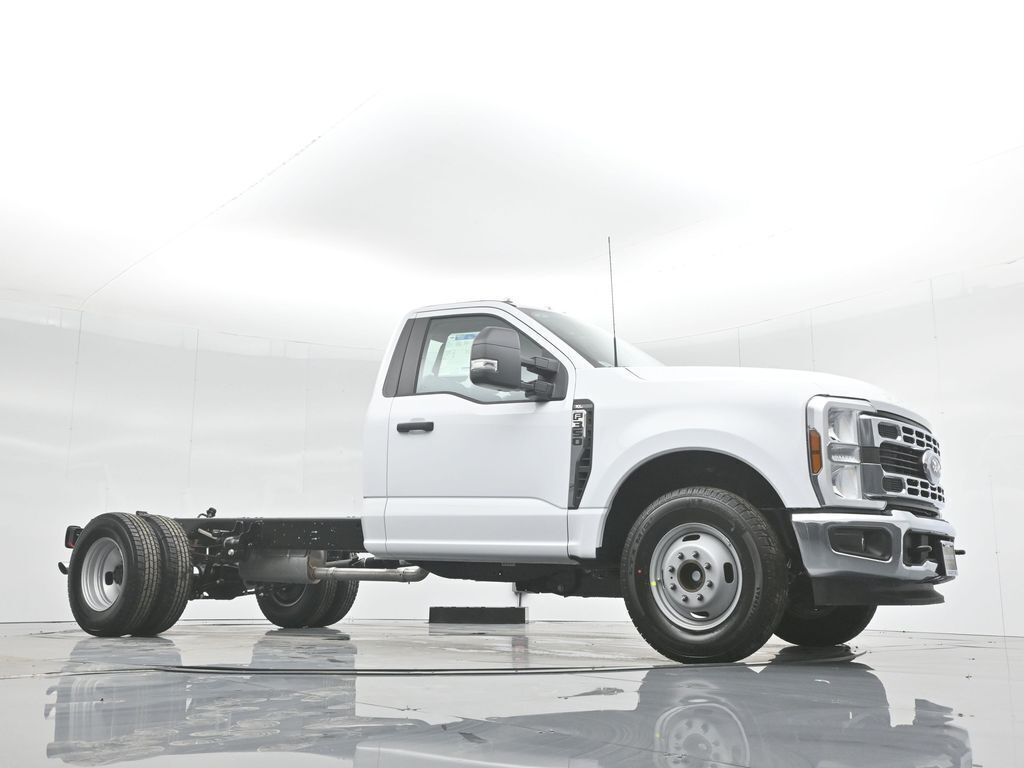 Stock # MB252642 5 Miles. 2025 Ford F-350SD XL DRW. GVWR: 14,000 lb Payload Package, Order Code 640A, XL Chrome Package (Bright Grille, Chrome Front Bumper, Halogen Fog Lamps, and Remote Start), 120V/400W Outlet, 17" Argent Painted Steel Wheels, 190 Amp Alternator, 3.73 Axle Ratio, 4 Speakers, 4-Ton Hydraulic Jack, 4-Wheel Disc Brakes, 410 Amp Dual Alternators, ABS brakes, Air Conditioning, AM/FM radio, AM/FM Stereo w/MP3 Player, Brake assist, Center High-Mounted Stop Lamp (CHMSL), Compass, Delay-off headlights, Dual 68 AH/65 AGM Battery, Dual front impact airbags, Dual front side impact airbags, Dual rear wheels, Emergency communication system: SYNC 4 911 Assist, Front anti-roll bar, Front Center Armrest w/Storage, Front License Plate Bracket, Front reading lights, Front wheel independent suspension, Fully automatic headlights, HD Vinyl 40/20/40 Split Bench Seat, Heated door mirrors, Illuminated entry, Low tire pressure warning, Outside temperature display, Overhead airbag, Overhead console, Panic alarm, Passenger cancellable airbag, Passenger vanity mirror, Power door mirrors, Power steering, Power windows, Rear anti-roll bar, Rear View Camera & Prep Kit, Remote keyless entry, Security system, Speed control, Steering wheel mounted audio controls, SYNC 4 Communication & Entertainment System, Tachometer, Telescoping steering wheel, Tilt steering wheel, Traction control, Trip computer, Turn signal indicator mirrors, and Variably intermittent wipers.